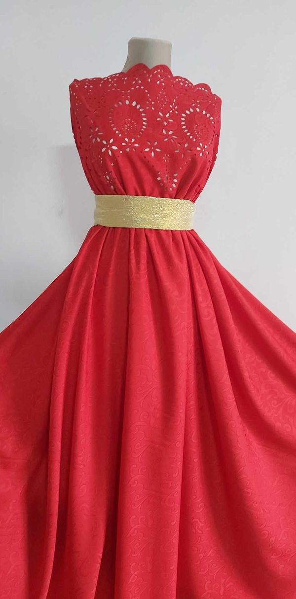 Broderia laser în nuanțe de roșu este o opțiune spectaculoasă pentru diferite articole vestimentare, datorită aspectului său elegant și sofisticat. Tehnica laserului conferă acestei broderii un model detaliat și fin, similar cu un brocard, adăugând un plus de rafinament și exclusivitate fiecărei piese.