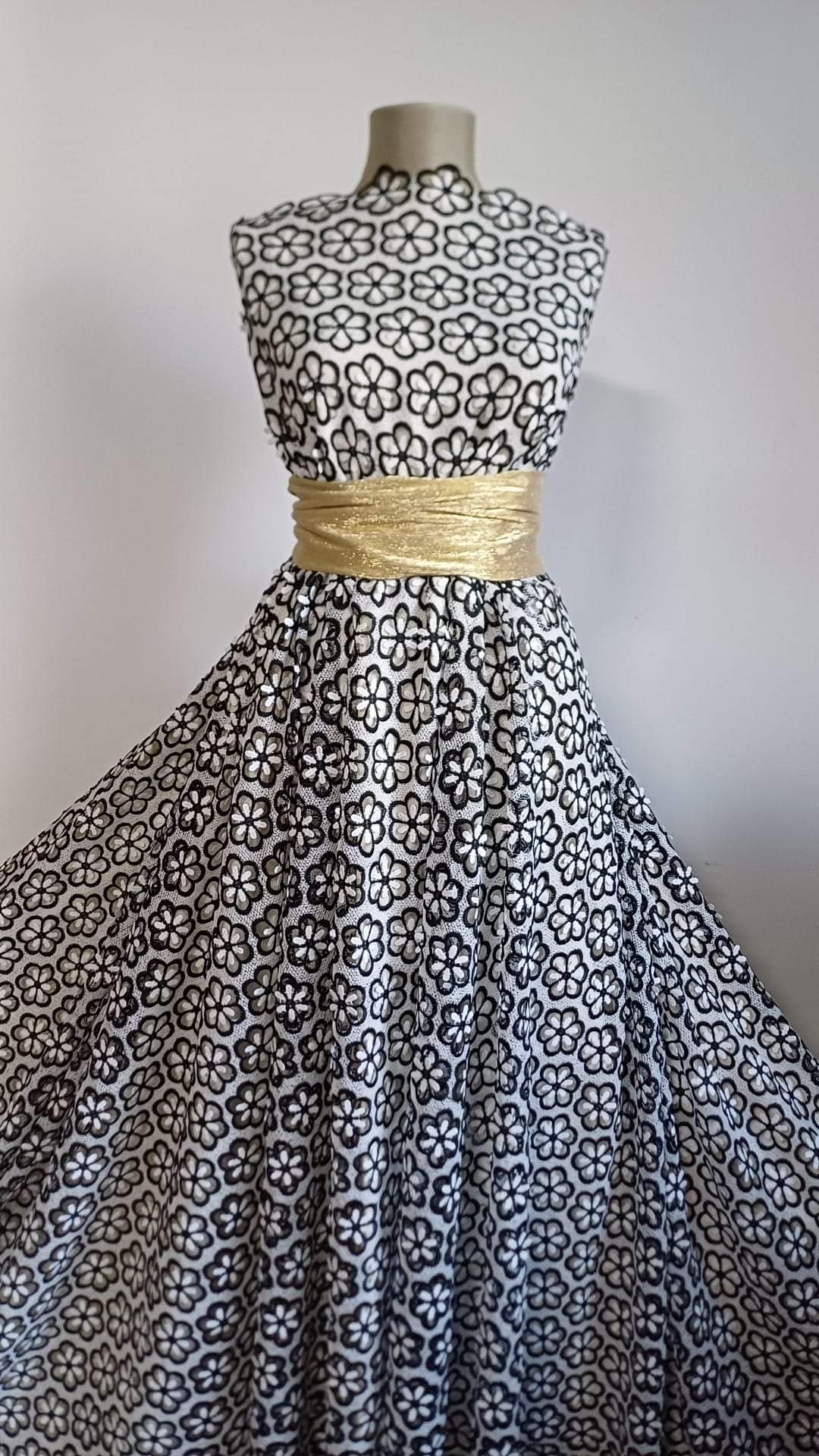Broderie Spartă Alb/ Negru, cu bordura festonata pe ambele laturi, buna pentru rochii, fuste, bluze, decorațiuni
