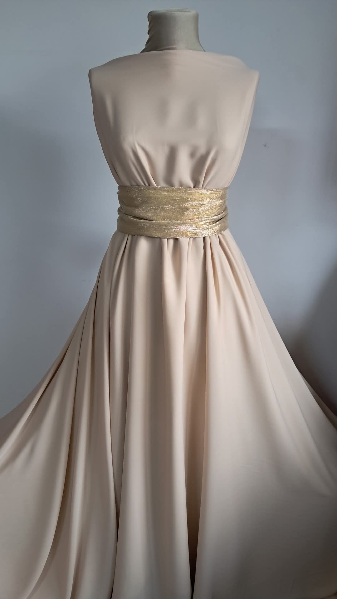 Un crep fin și fluid, într-o nuanță naturală de bej, cu origini rafinate din Londra. Materialul se remarcă prin căderea frumoasă și textura sa ușor ondulată, fiind o alegere inspirată pentru rochii vaporoase, fuste delicate, bluze feminine sau eșarfe elegante. Ideal și pentru volane sau decorațiuni textile care adaugă un plus de grație și stil. Un material versatil, cu un aer clasic și atemporal.