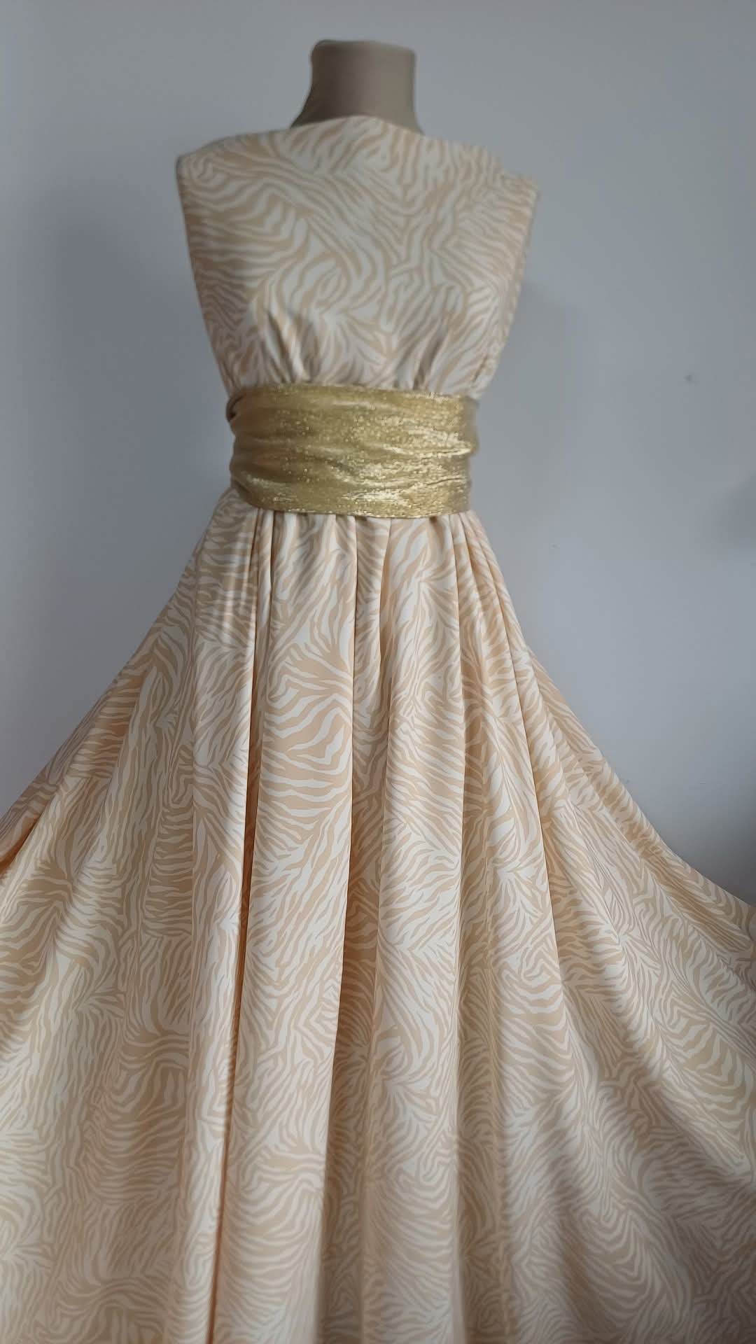 Un material rafinat, cu un model discret în nuanțe de crem și bej, ce emană eleganță și bun gust. Crepul Regal impresionează prin textura sa ușor fluidă și căderea frumoasă, fiind ideal pentru rochii, fuste, bluze, eșarfe sau decorațiuni cu un aer sofisticat. Provenit din Londra, acest material adaugă un plus de distincție oricărui proiect vestimentar sau creativ.