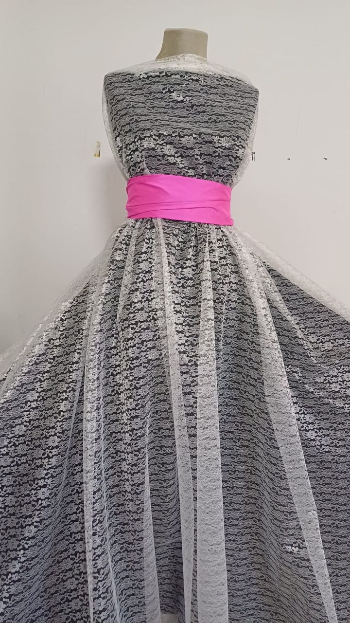 Această dantelă fină de culoare albă cu un model floral este o alegere excelentă pentru proiectele de croitorie. Poate fi utilizată cu succes pentru confecționarea rochiilor, fustelor, bluzelor, garniturilor și esarfelor. Modelul floral adaugă o notă elegantă și feminină oricărui produs confecționat din acest material.