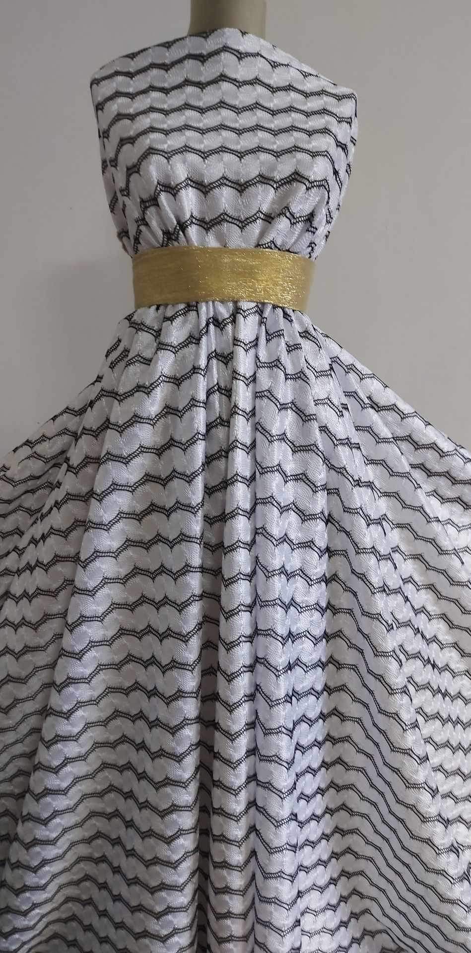 1. **Rochii**: O rochie realizată din această dantelă poate fi foarte sofisticată, ideală pentru evenimente speciale. Contrastele alb-negru pot adăuga un efect vizual interesant.
