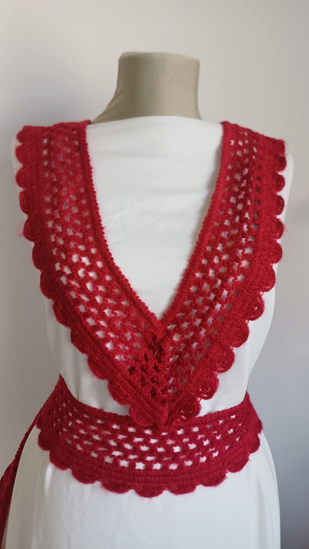 Cu o nuanță profundă de roșu închis și un model croșetat fin din fir de mohair, această dantelă emană eleganță și căldură. Textura sa moale și detaliile lucrate cu grijă o transformă într-un element decorativ deosebit, potrivit pentru creații vestimentare, accesorii sau decorațiuni care caută un accent clasic și expresiv. Ideală pentru a adăuga caracter și rafinament fiecărui proiect.