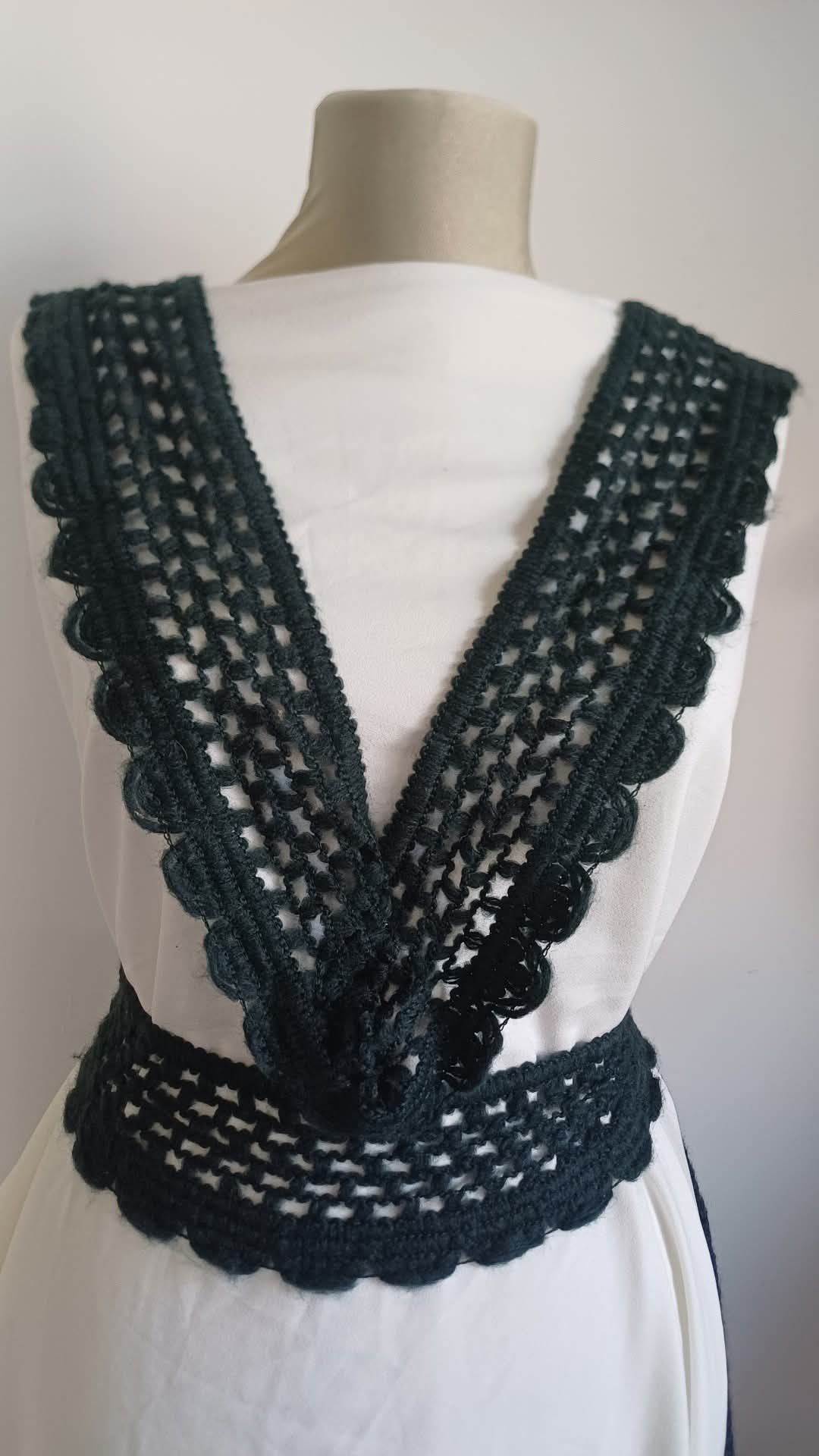 Această dantelă croșetată din fir moale de mohair impresionează prin combinația de culori contrastante – verde intens și negru profund – care oferă un efect vizual aparte. Fin lucrată, cu un model decorativ deosebit, este alegerea perfectă pentru accente sofisticate în creații vestimentare, accesorii sau proiecte decorative. Textura sa delicată adaugă un plus de rafinament și originalitate fiecărei lucrări.