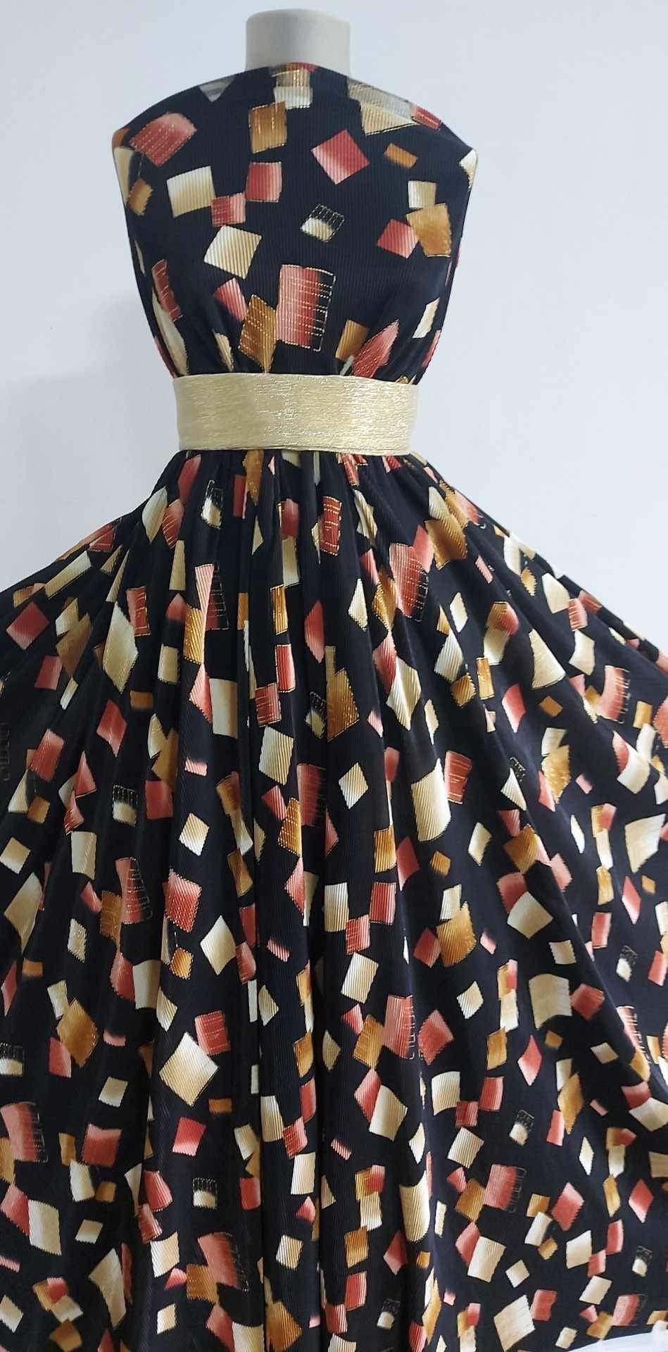 Material elastic plisat,Negru figuri geometrice Roz/Bej/Auriu, bun pentru rochii, fuste, bluze, pantaloni, salopete