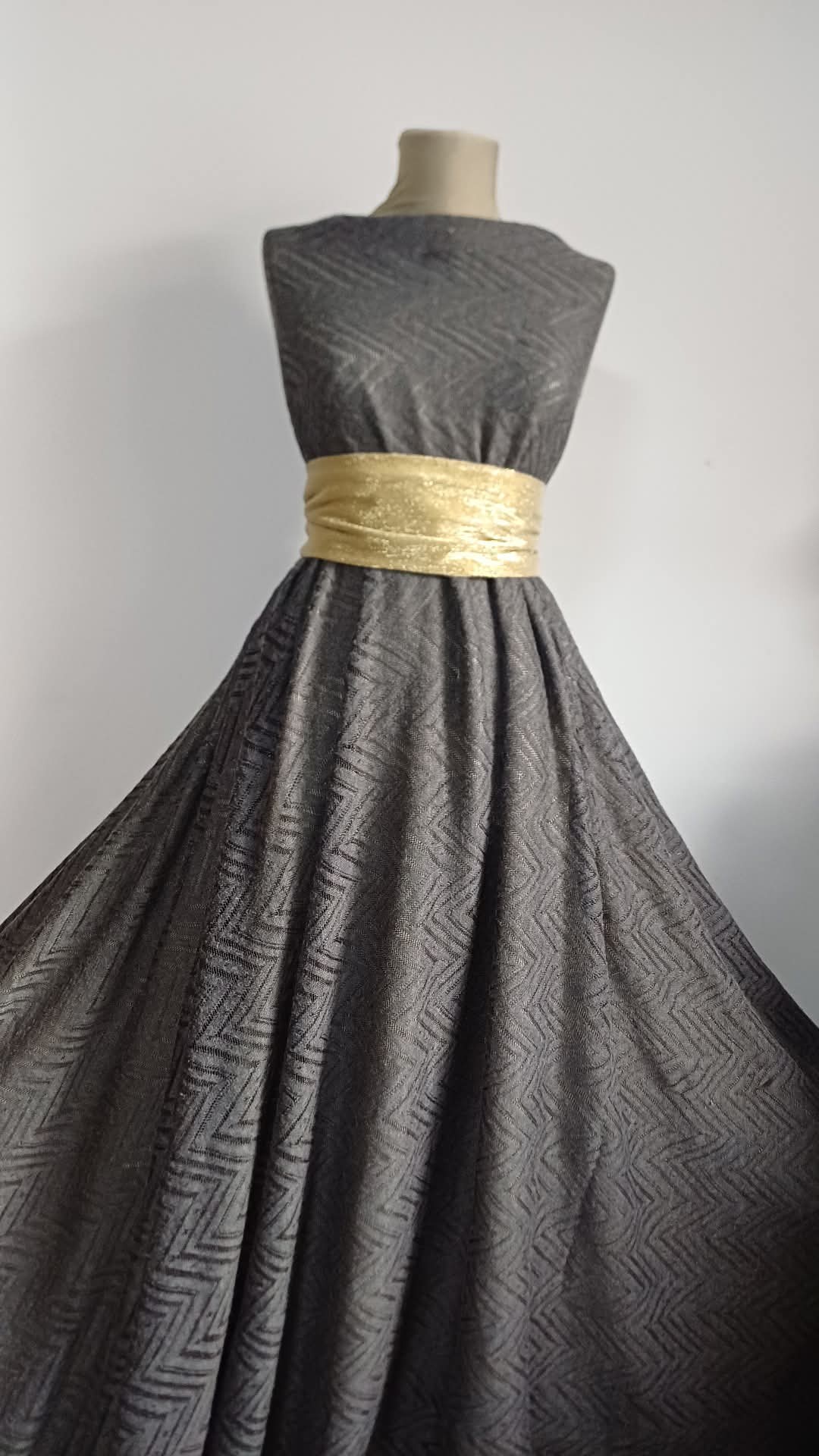 Elegant și versatil, acest tricot tip pulover dantelat în tonuri de gri închis impresionează prin rafinamentul discret al modelului în V și textura moale, plăcută la atingere. Elastic și ușor de prelucrat, este ideal pentru rochii cu linie fluidă, fuste cu un plus de stil, bluze sau malete comode, dar și pentru cardigane moderne, turbane elegante sau șaluri sofisticate. Nuanța sobră, dar de efect, îl face o alegere perfectă pentru ținute de zi sau de seară, aducând echilibru și profunzime oricărui design.