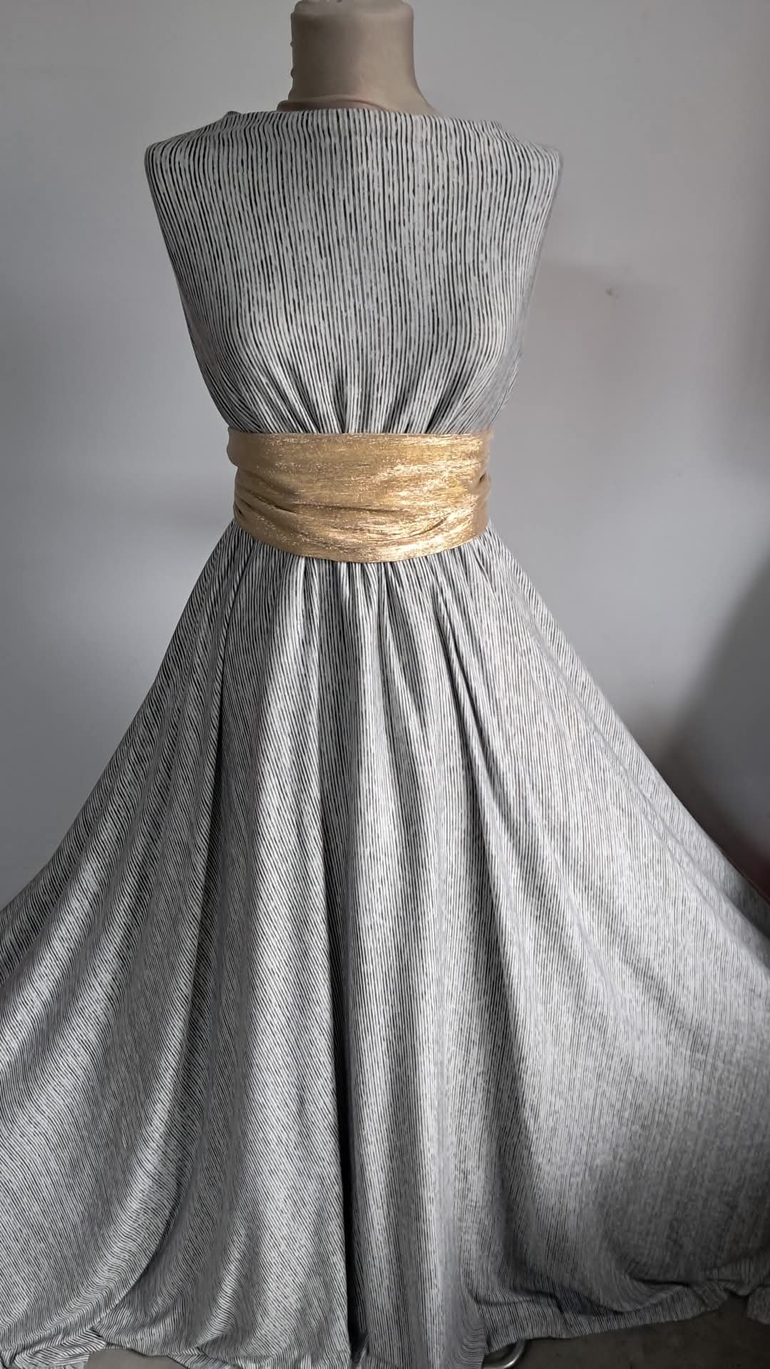 Un material modern și versatil, acest jerse cu dungi în tonuri elegante de negru și gri se remarcă prin elasticitatea sa și fluiditatea aparte. Ușor, plăcut la purtare și cu o cădere frumoasă, este ideal pentru rochii, fuste, bluze, pantaloni, salopete, colanți sau șaluri. Perfect pentru ținute casual sau sport-chic, adaugă un plus de dinamism și confort garderobei tale.