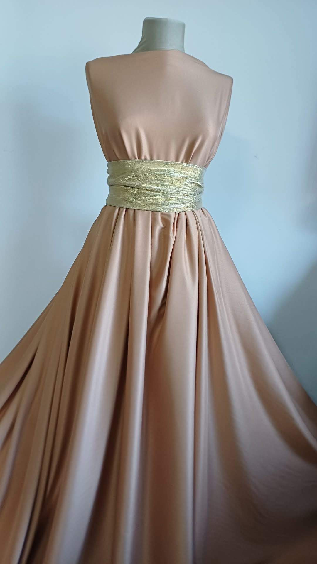 Un material elastic și confortabil, în nuanțe calde de bej, perfect pentru ținute lejere și versatile. Stofa nu necesită căptușeală și este rezistentă la șifonare, oferind o ținută impecabilă pe tot parcursul zilei. Ideală pentru rochii elegante, bluze casual, fuste comode, pantaloni versatili, salopete îndrăznețe, cardigane ușoare sau costume de vară cu stil. O alegere practică și modernă, care combină confortul cu designul atractiv.