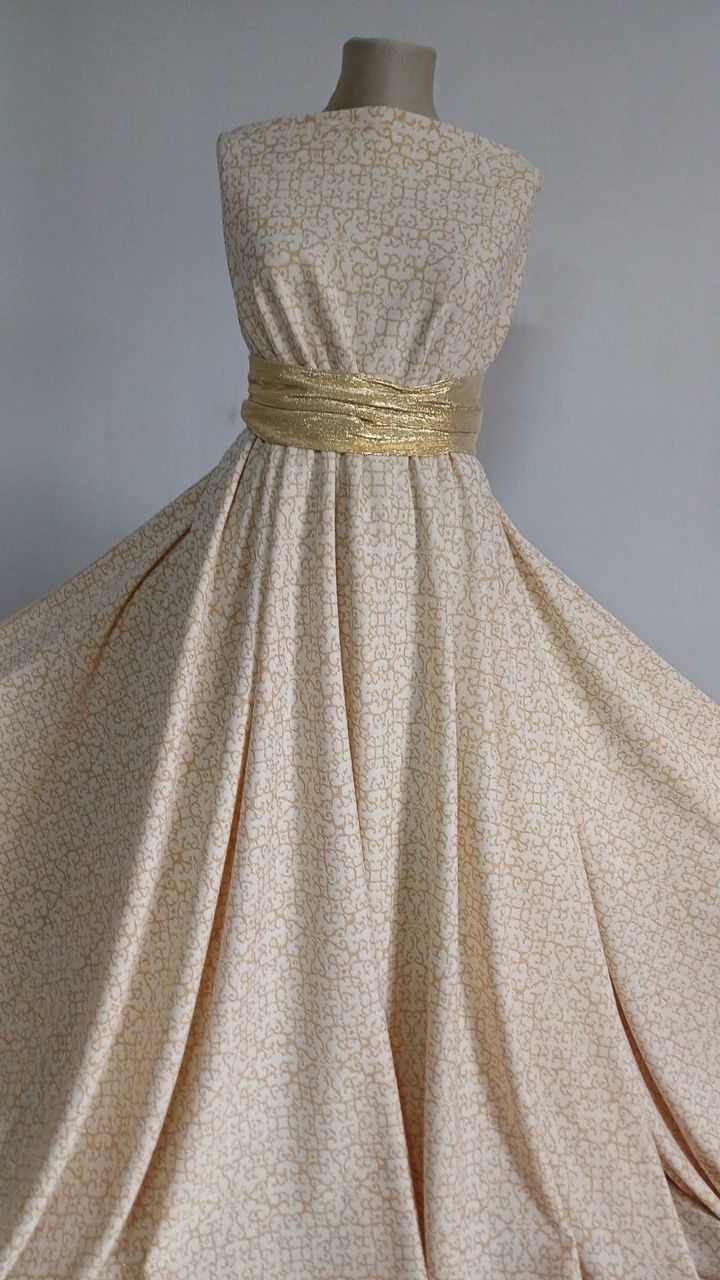 Potrivit pentru ținute festive: Datorită strălucirii sale și aspectului elegant, lurexul crem cu auriu este ideal pentru crearea unor ținute festive. Poți folosi acest material pentru a realiza rochii de seară, fuste drapate sau bluze cu un plus de eleganță și strălucire.