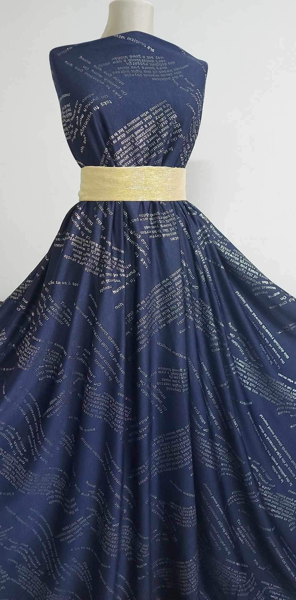 Lycra, în nuanța Bleumarin cu scris argintiu, este o țesătură elastică și durabilă, ideală pentru articole vestimentare sportive și de modă. Nuanța blåmarin oferă un aspect elegant și versatil, în timp ce scrisul argintiu adaugă o notă de strălucire și rafinament. Această combinație este perfectă pentru confecționarea de costume de baie, îmbrăcăminte de fitness sau ținute casual, oferind atât confort, cât și un design atrăgător.