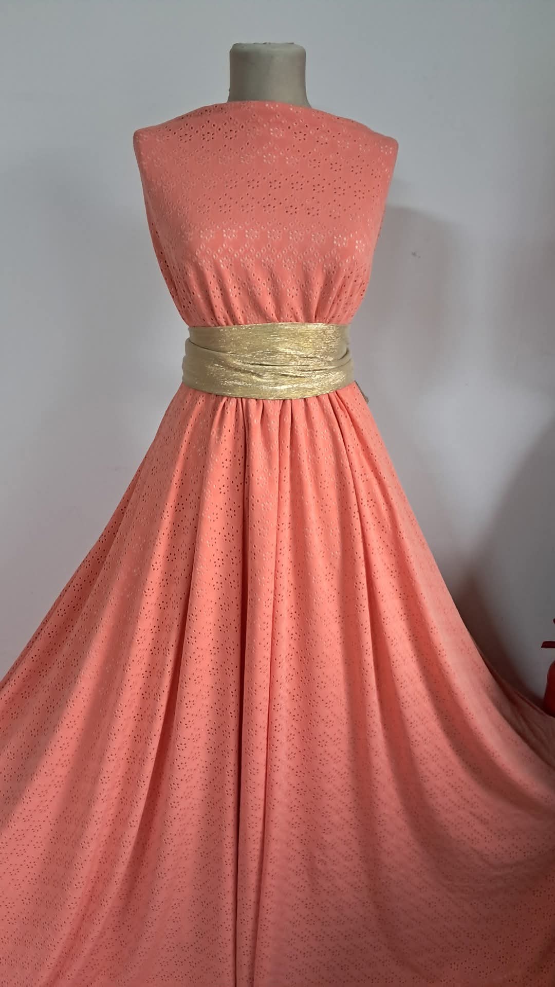 Această lycra brodată într-o nuanță delicată de somon îmbină armonios finețea broderiei cu elasticitatea unui material confortabil și ușor de modelat. Este ideală pentru creații fluide și feminine precum rochii, fuste sau bluze, oferind atât eleganță, cât și libertate de mișcare. Textura sa plăcută și aspectul sofisticat o transformă într-o alegere inspirată pentru piese vestimentare cu personalitate.