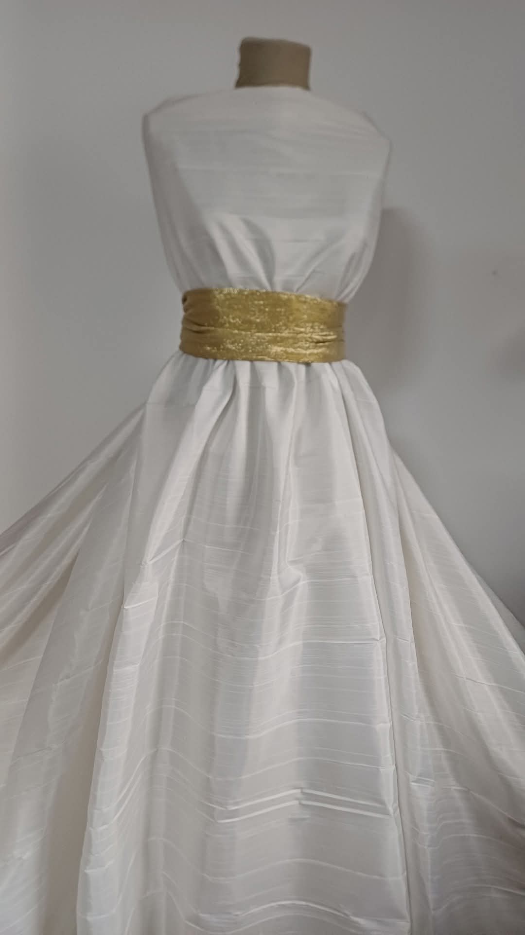 Delicată și vaporoasă, această mătase crinckle albă se remarcă prin textura sa fin plisată și ținuta lejer infoiată. Ideală pentru piese vestimentare cu volum și mișcare – fuste ample, bluze diafane, rochii fluide – dar și pentru decorațiuni care aduc un plus de eleganță și rafinament oricărui spațiu. Un material care inspiră feminitate, naturalețe și simplitate sofisticată.