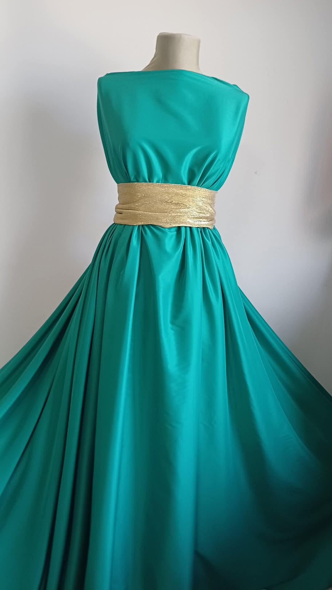 Ușor elastică și delicată, această mătase finuță în nuanța vibrantă de verde turcoaz este alegerea perfectă pentru piese fluide și feminine. Textura sa moale și lejeră îmbracă frumos silueta, oferind confort și eleganță în același timp.