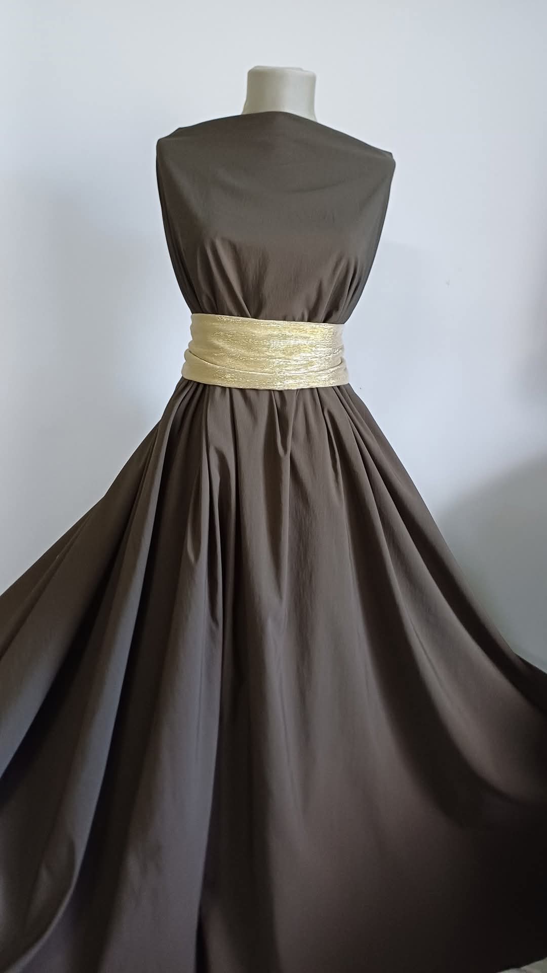 Mătase Kaki Închis cu Firișoare în Relief – Țesătură cu aspect sofisticat, ușor infoiată, asemănătoare cu taftaua, ce oferă structură și eleganță creațiilor vestimentare. Detaliile fine în relief adaugă textură și rafinament, iar nuanța profundă de kaki închis conferă un aer modern și versatil. Ideală pentru rochii, fuste, pantaloni, salopete, șorturi sau jachete de vânt, această mătase este alegerea perfectă pentru ținute cu personalitate și stil.