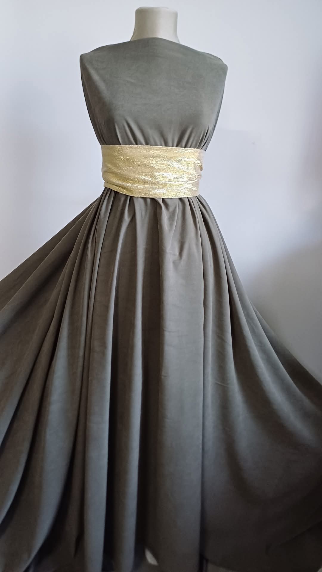 Mătase Kaki cu Finish Catifelat și Dos Satinat – Țesătură rafinată, cu fața moale tip „puf piersică” și dos satinat, ce oferă un efect catifelat la atingere. Materialul este opac, nu se sifonează și oferă un confort sporit în purtare, fiind în același timp ușor de întreținut. Ideală pentru rochii, fuste, bluze, pantaloni, salopete sau cardigane, această mătase îmbină eleganța cu funcționalitatea, fiind alegerea perfectă pentru piese moderne și sofisticate.