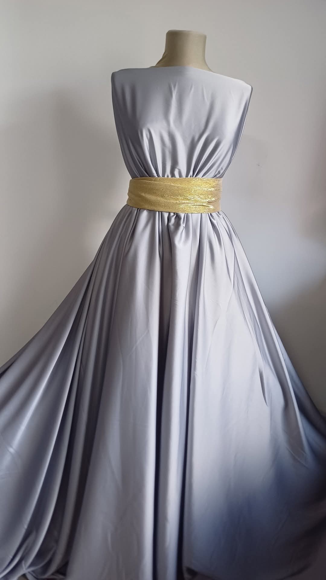 Această mătase satinată de calitate lux, în nuanță subtilă de gri argintiu, impresionează prin luciul său delicat și textura ușor elastică. Materialul nu necesită căptușeală și nu se șifonează, fiind perfect pentru rochii elegante, fuste fluide, bluze, cămăși, caftane, pijamale sau halate. O alegere sofisticată și practică pentru ținute cu un aer modern și rafinat.