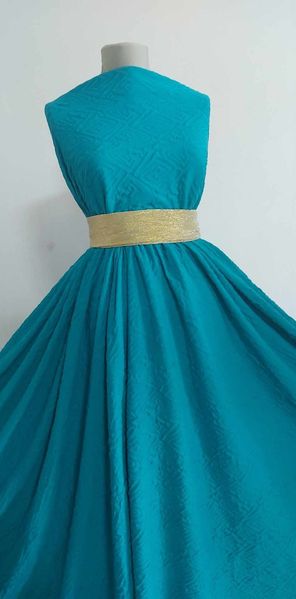 Materialul dublustrat turcoaz, cu model în relief, sună ca o alegere minunată pentru diverse proiecte vestimentare. Iată câteva motive pentru care acest material ar fi o opțiune excelentă pentru rochii, fuste, bluze, pantaloni și turbane: