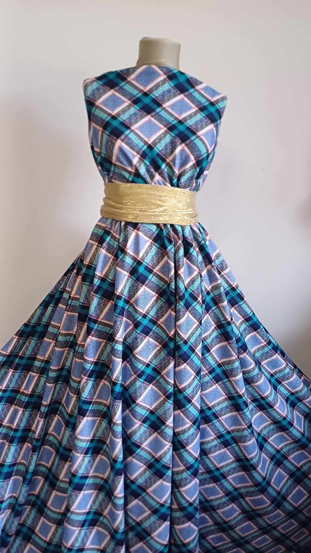 Un material elastic cu un imprimeu clasic în carouri, în nuanțe proaspete de turcoaz și albastru, care adaugă un aer dinamic și modern oricărei creații. Textura sa flexibilă îl face potrivit pentru o gamă variată de articole vestimentare, de la rochii și fuste până la bluze, costume sport, bluzoane, cardigane și pantaloni. Confortabil și versatil, acest material este alegerea ideală pentru ținute casual sau sport elegante.