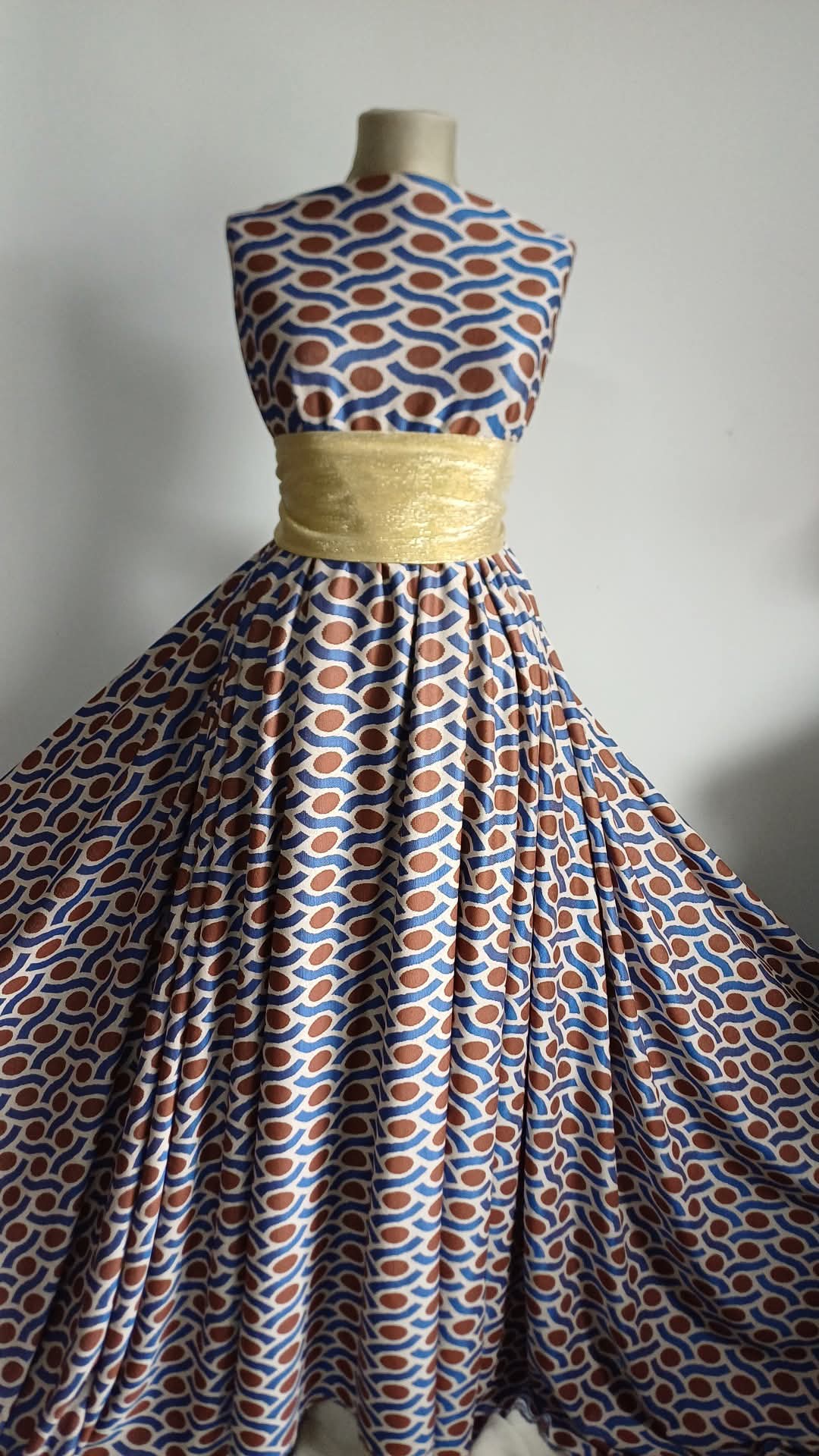 Material Elastic Ovale Maron /Albastru/Crem ELA1055