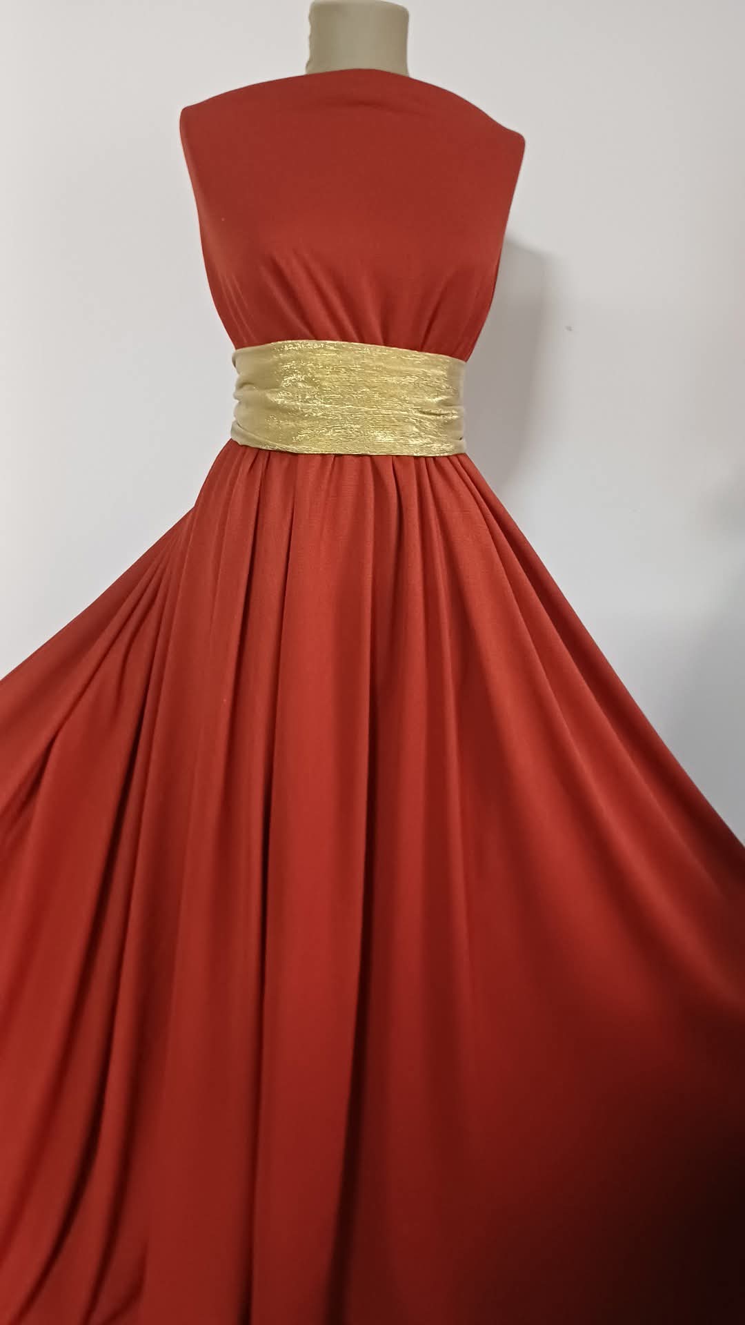 Un material dens și plin, cu o textură subtilă și elasticitate ideală pentru confort și lejeritate în purtare. Nu necesită căptușeală, fiind practic și ușor de lucrat. Nuanța caldă de cărămiziu adaugă profunzime și rafinament ținutelor, fiind perfect pentru rochii, fuste, bluze, pantaloni sau salopete cu personalitate. O alegere versatilă, ideală pentru piese moderne, bine conturate.