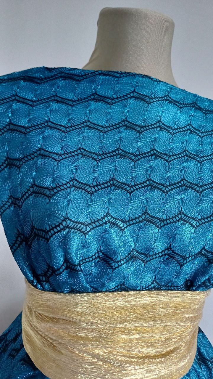 Dantela căptușită în nuanța de turcoaz cu negru, cu un model tip macrame, este o opțiune excelentă pentru diverse proiecte vestimentare. Textura sa și modelul detaliat îi conferă un aspect elegant și rafinat, perfect pentru rochii, fuste, bluze, pantaloni, salopete sau sacouri. Combinația de culori între turcoaz și negru adaugă un element de contrast și sofisticare, transformând orice piesă vestimentară într-o creație deosebită. Este un material versatil, potrivit pentru diferite stiluri și ocazii, iar nuanța vibrantă va atrage cu siguranță privirile.