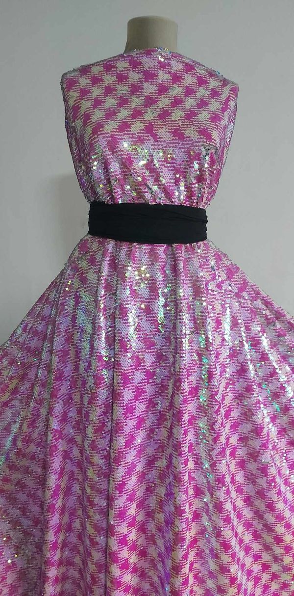 Paietele reversibile sunt perfecte pentru rochii și fuste, adăugând un element de glamour și sofisticare oricărei ținute. Cu nuanțe vibrante de roz și alb, precum și accente subtile de argintiu, acest material va atrage cu siguranță privirile și va impresiona în orice context.