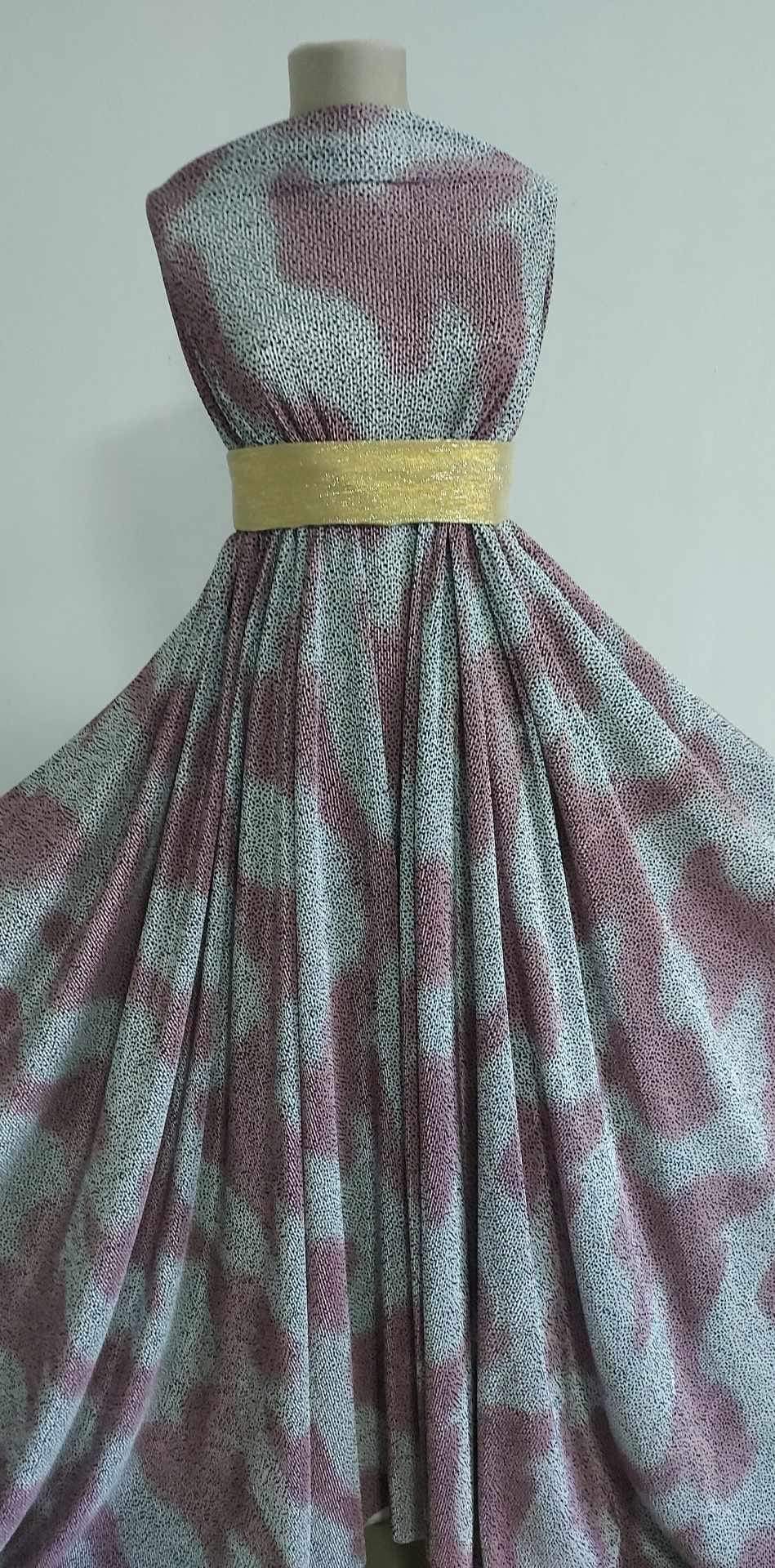Material elastic plisat, Animal.print Alb/Roz/Negru bun pentru rochii, fuste, bluze, pantaloni, salopete