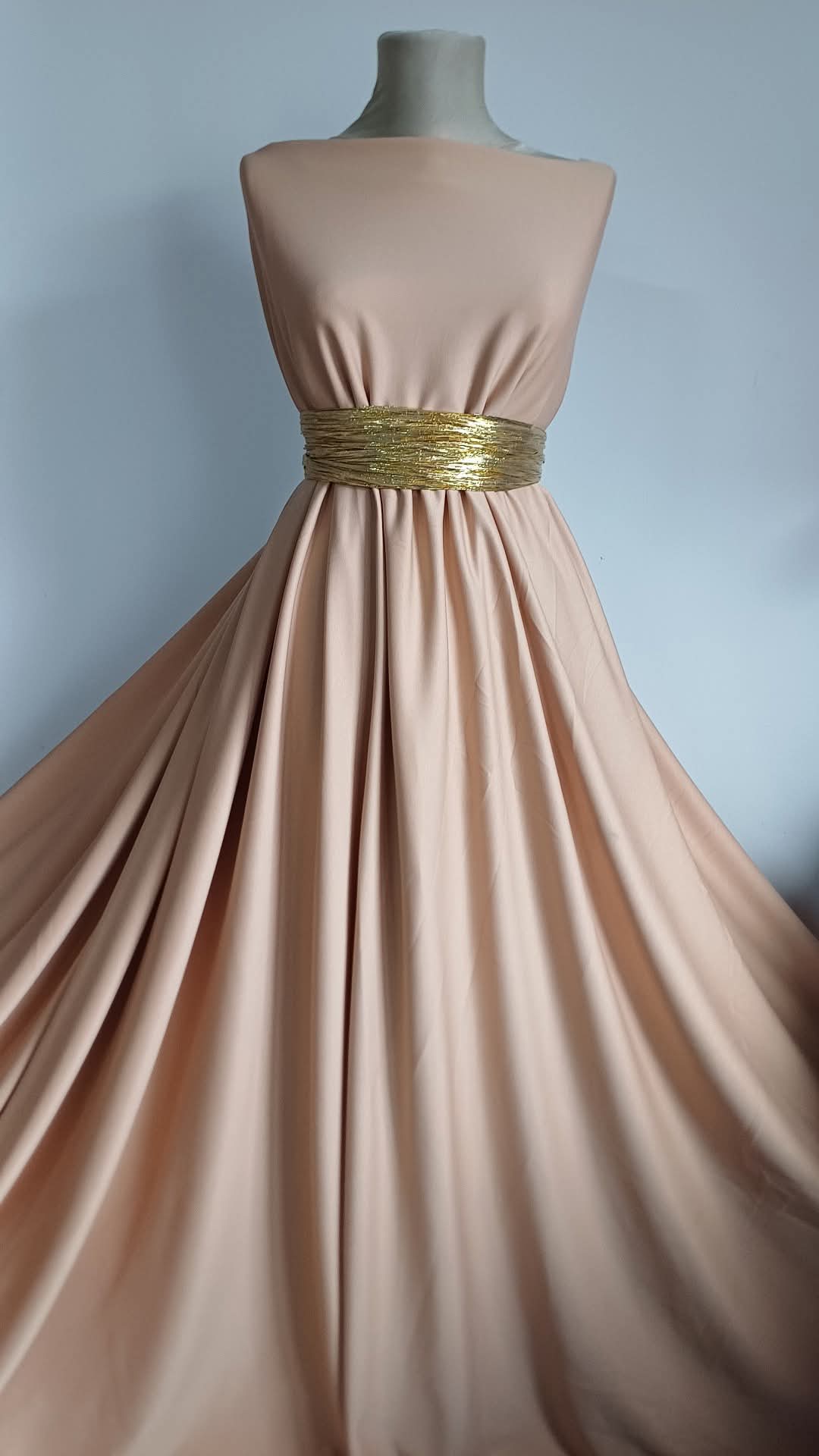 Perfect pentru rochii, fuste, bluze, colanți, turbane și alte creații vestimentare, acest material oferă elasticitate și fluiditate, fără a compromite ținuta piesei. Ușor de lucrat și potrivit pentru toate anotimpurile, este un aliat de nădejde în orice atelier, fie că e vorba de piese casual sau de ținute elegante și comode în același timp.