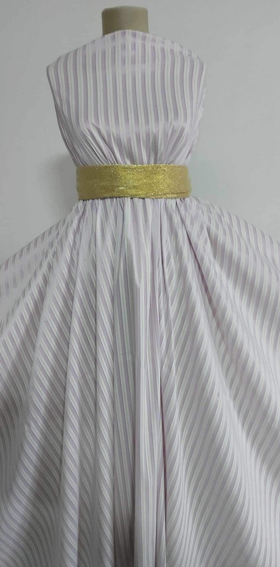 Milano -Poplin elastic Alb dungi Lila, bun pentru rochii, fuste, bluze, cămăși, pantaloni de vară. Nu este transparent.