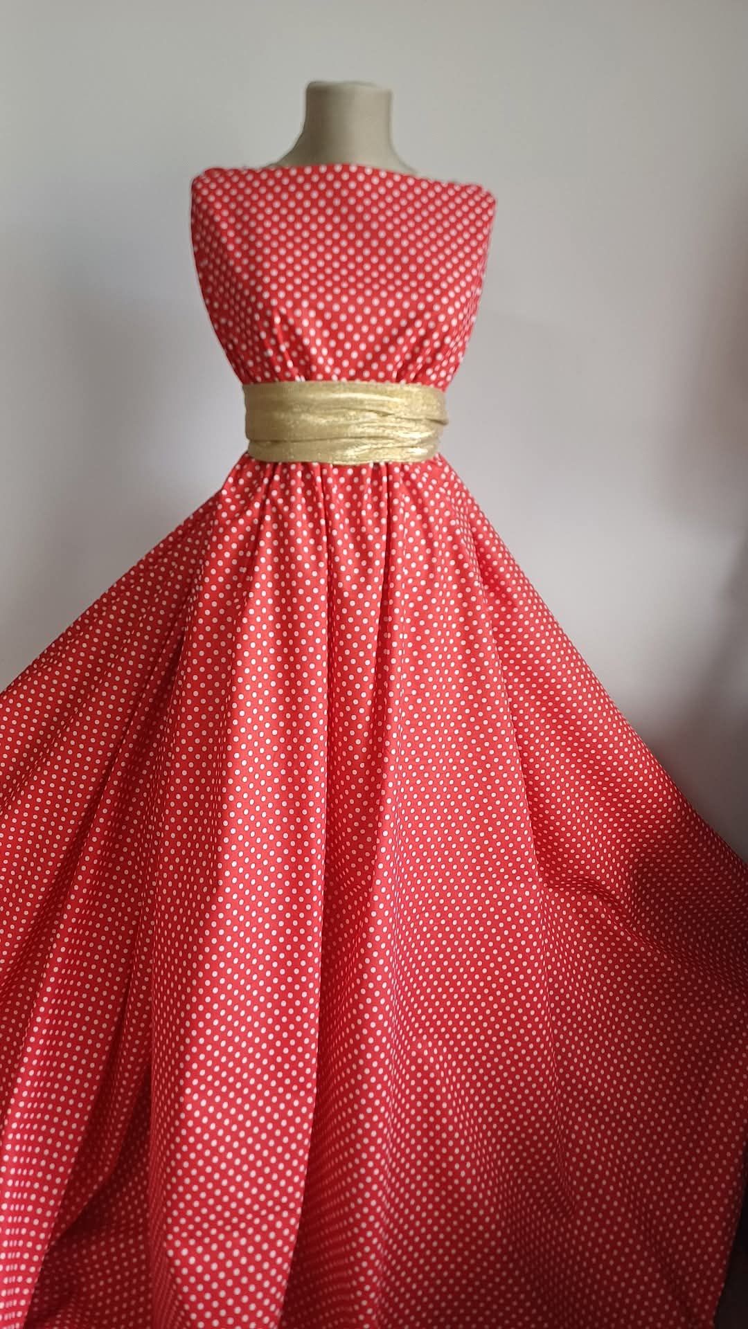 Poplin Bumbac, 100% fibră naturală, ROSU buline ALBE bun pentru rochii, fuste, bluze, articole de damă și copii