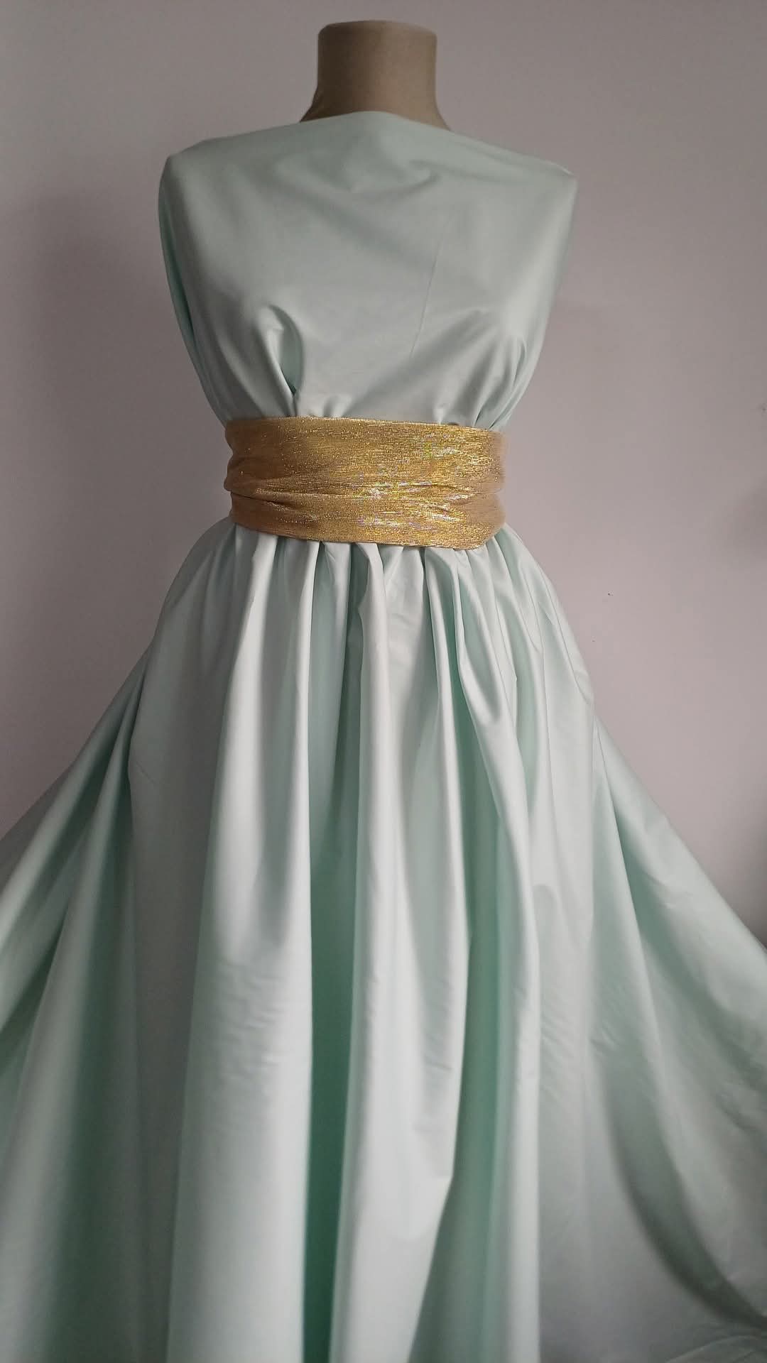 Un material practic și plăcut, acest poplin în nuanță fresh de mint este compus din bumbac cu un strop de elastan (95/5%), oferind confort și libertate de mișcare. Ideal pentru o gamă largă de articole: rochii, fuste, bluze, pantaloni, salopete, cămăși, dar și pentru articole pentru copii și bebeluși. Datorită rezistenței și texturii sale, este perfect și pentru uniforme medicale. O alegere versatilă, ușor de întreținut și ideală pentru purtare zilnică.