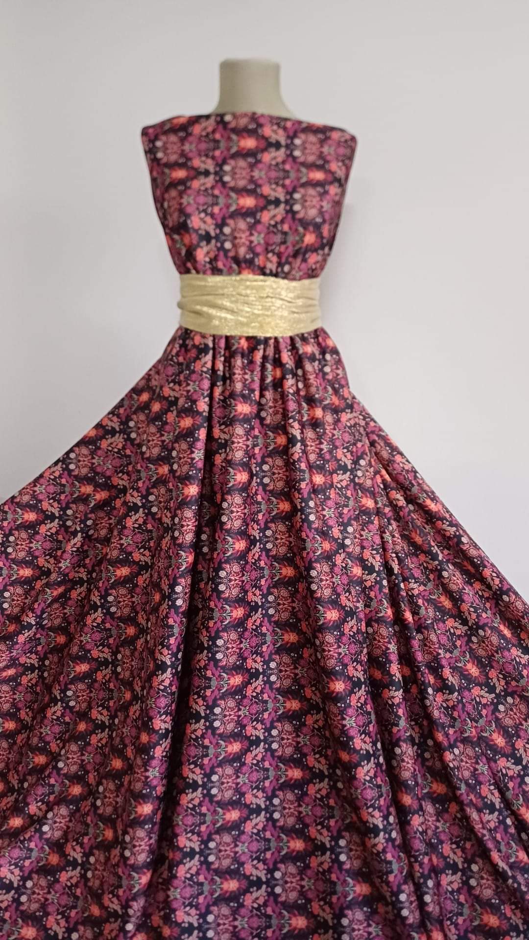 Scuba Negru Model Floral Grena/Coral- material elastic plin, bun pentru rochii, fuste, bluze, pantaloni. Are o fluiditate frumoasa, nu se destramă, nu necesita captuseala, pica bine pe formele adorabile .