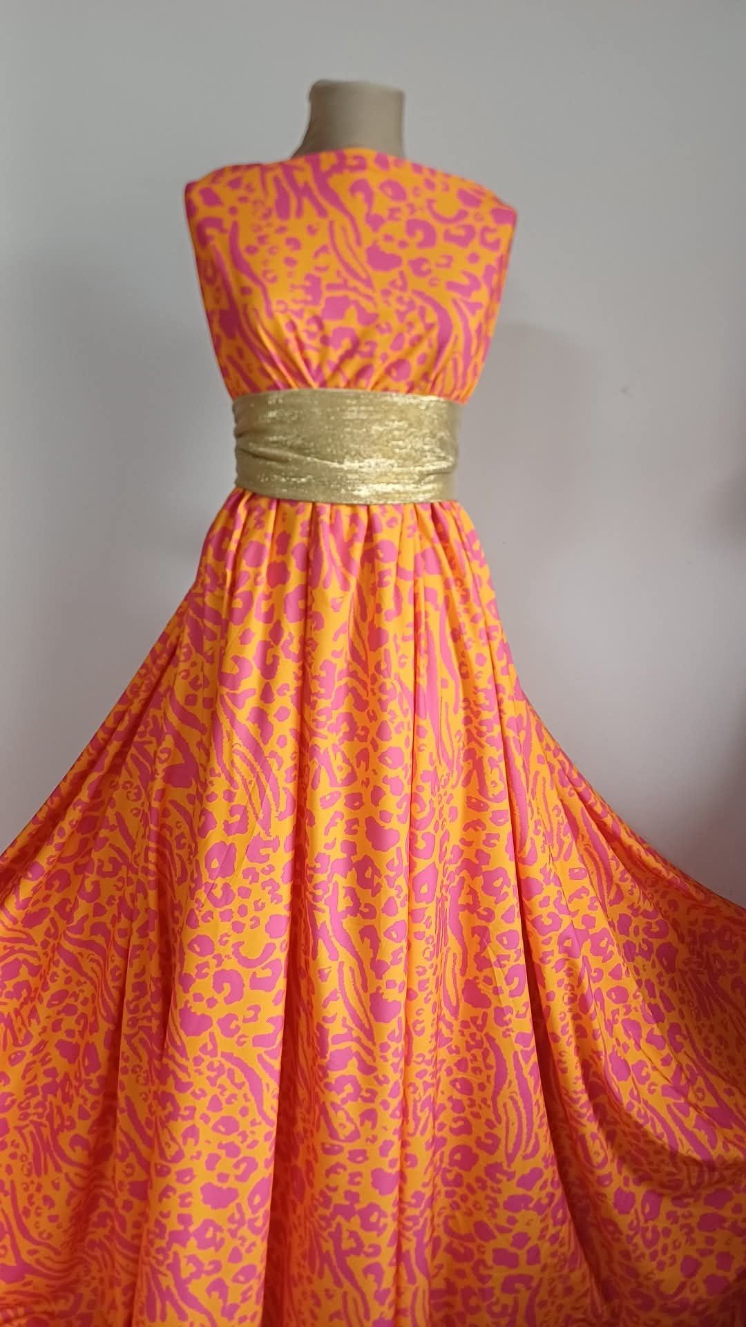 Un material luxuriant și vibrant, în combinația îndrăzneață de orange cu fucsia, ce atrage privirea prin culoare și eleganță. Mătasea elastică are o textură moale și catifelată pe piele, oferind confort și libertate de mișcare. Nu se șifonează și nu necesită căptușeală, fiind ideală pentru rochii fluide, fuste, bluze feminine, salopete moderne sau pantaloni cu un croi lejer și sofisticat.