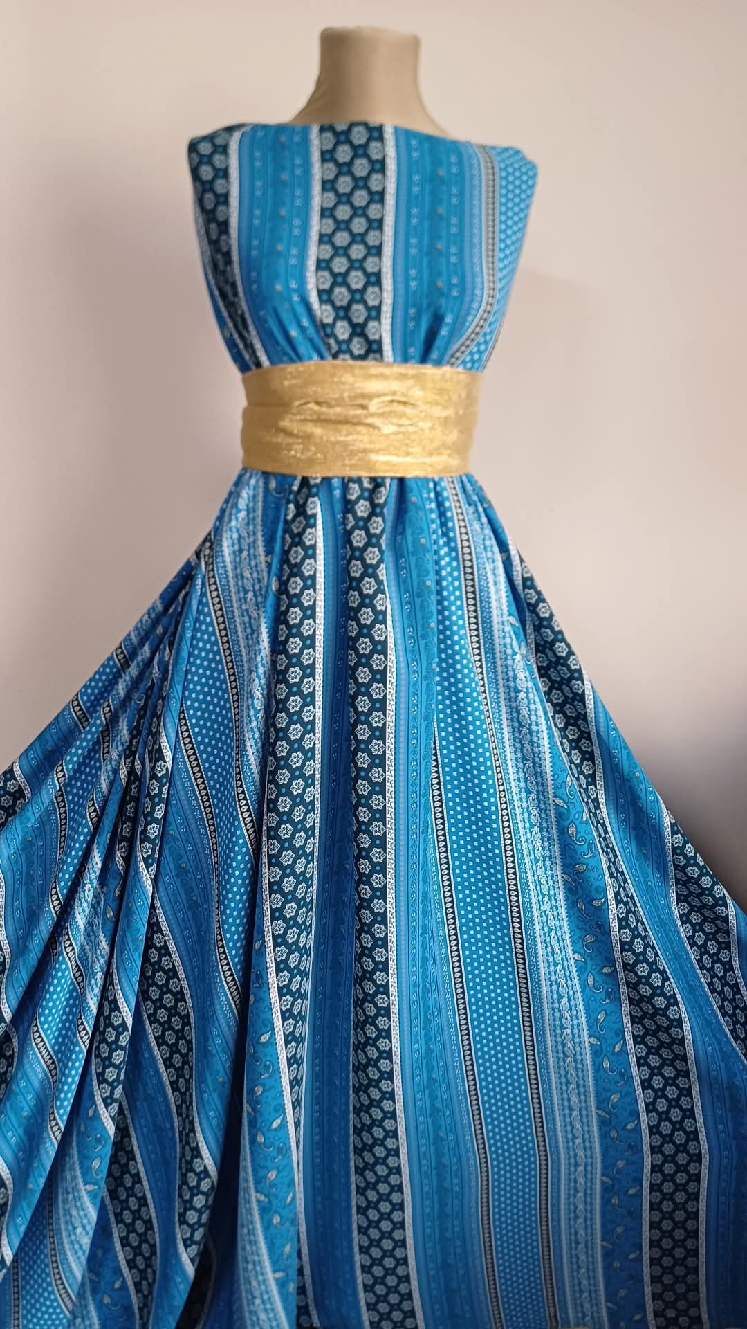 Silky PAISLEY Dungi Albastru/Alb mătase elastică, nu se șifonează, nu necesită căptușeală moale și catifelată pe piele, bună pentru rochii, fuste, bluze , salopete, pantaloni