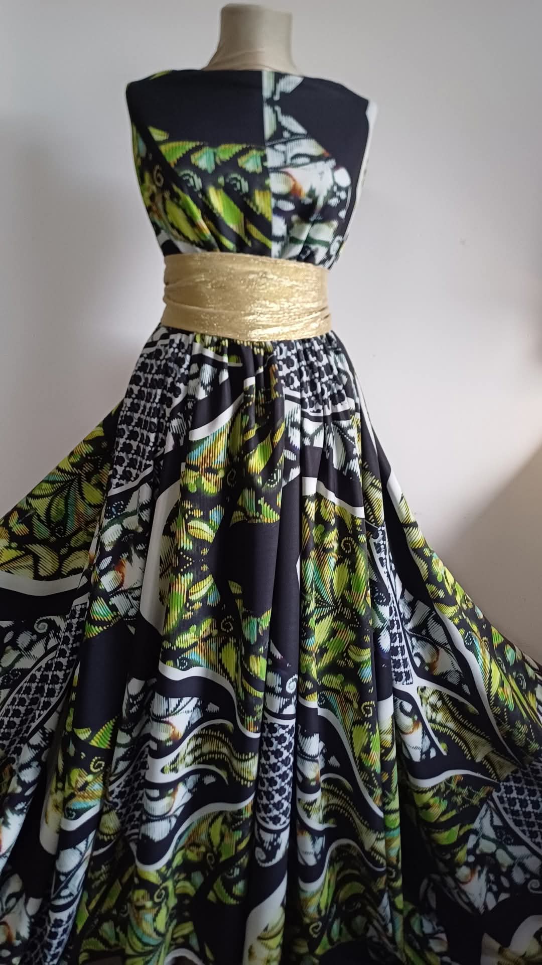 Un material cu personalitate, ce aduce un omagiu tradițiilor printr-un imprimeu etno deosebit, dispus sub formă de panou. Textura plăcută și structura stabilă îl fac ușor de lucrat chiar și pentru cei aflați la început de drum. Nu se destramă, nu se șifonează și nu necesită căptușeală, fiind ideal pentru rochii cu design unic, fuste cu impact vizual, pantaloni, compleuri sau salopete care spun o poveste. O alegere inspirată pentru creații cu identitate și stil.