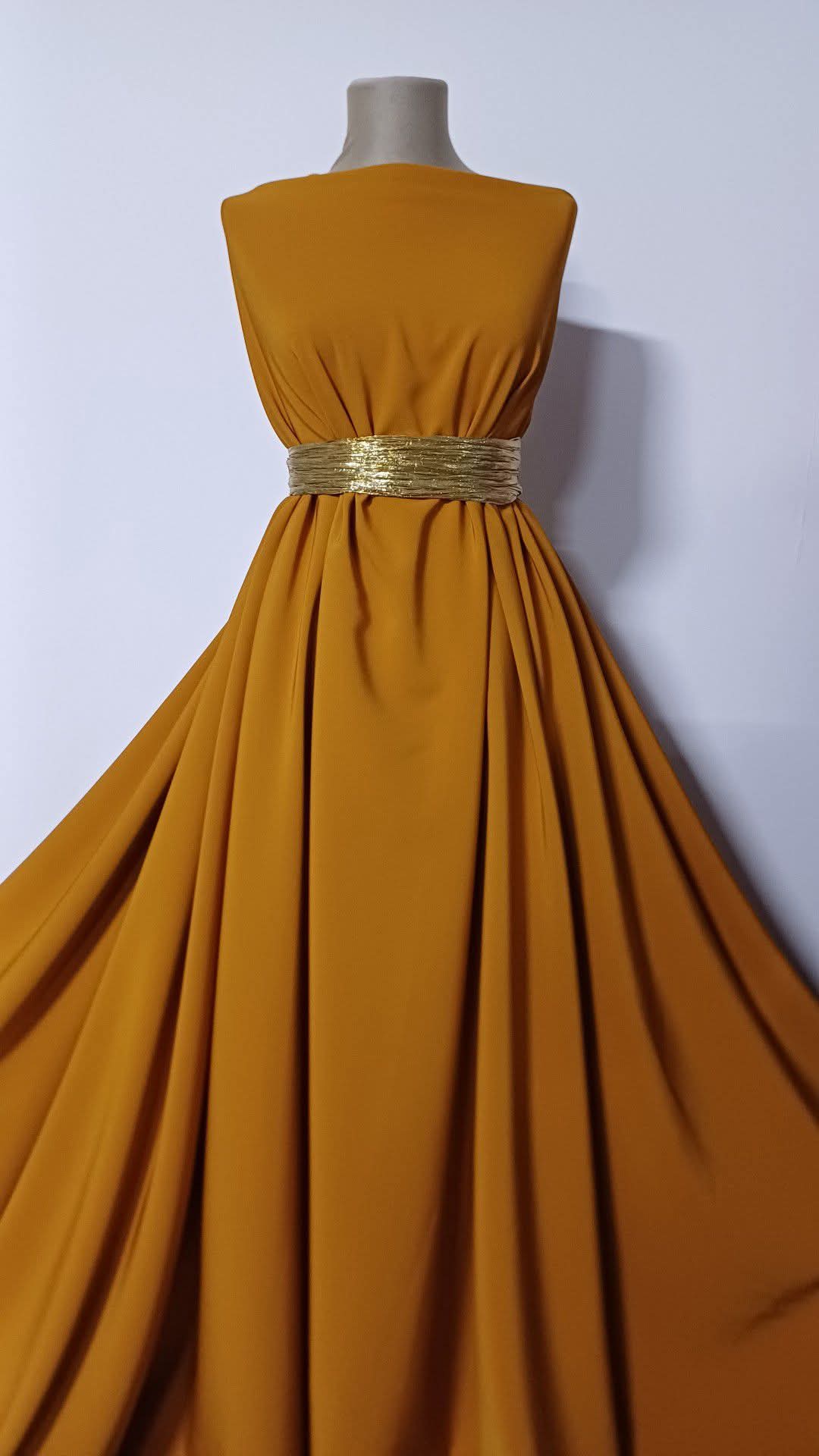 Stofa Barbi- Mustar, elastic, ușor de cusut și de către cei incepatori, nu se destramă, nu se vede prin el, nu se sifoneaza . Bun pentru rochii, fuste, bluze, pantaloni,