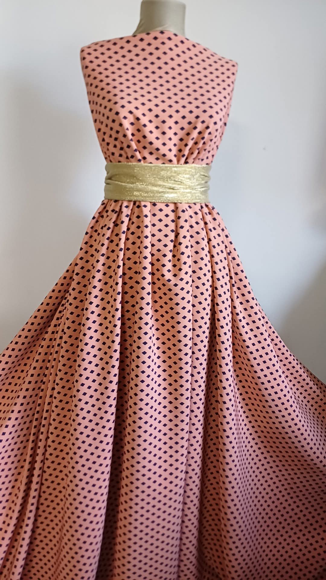 Un material versatil și modern, cu design geometric în rombulețe, prezentat în combinația rafinată de somon și bleumarin. Fiind dublă față, poate fi folosit pe ambele părți, oferind libertate creativă în realizarea pieselor vestimentare. Este ușor de lucrat, inclusiv pentru începători, nu se destramă, nu necesită căptușeală și nu se șifonează. Ideal pentru rochii, fuste, pantaloni, salopete sau compleuri cu un look contemporan și îngrijit. Un material practic, dar cu impact vizual.