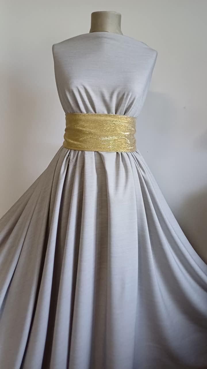 O țesătură cu un ton elegant de gri perlat, ce surprinde prin finețe și versatilitate. Compoziția echilibrată, cu un conținut generos de bumbac și un strop de elastan, oferă confort, lejeritate și o cădere frumoasă. Provenită din Londra, această stofă este ideală pentru rochii, fuste, bluze, pantaloni, salopete, sacouri, costume sau cardigane. Textura sa plăcută și aspectul sofisticat o transformă într-o alegere perfectă pentru ținute elegante, office sau smart-casual.