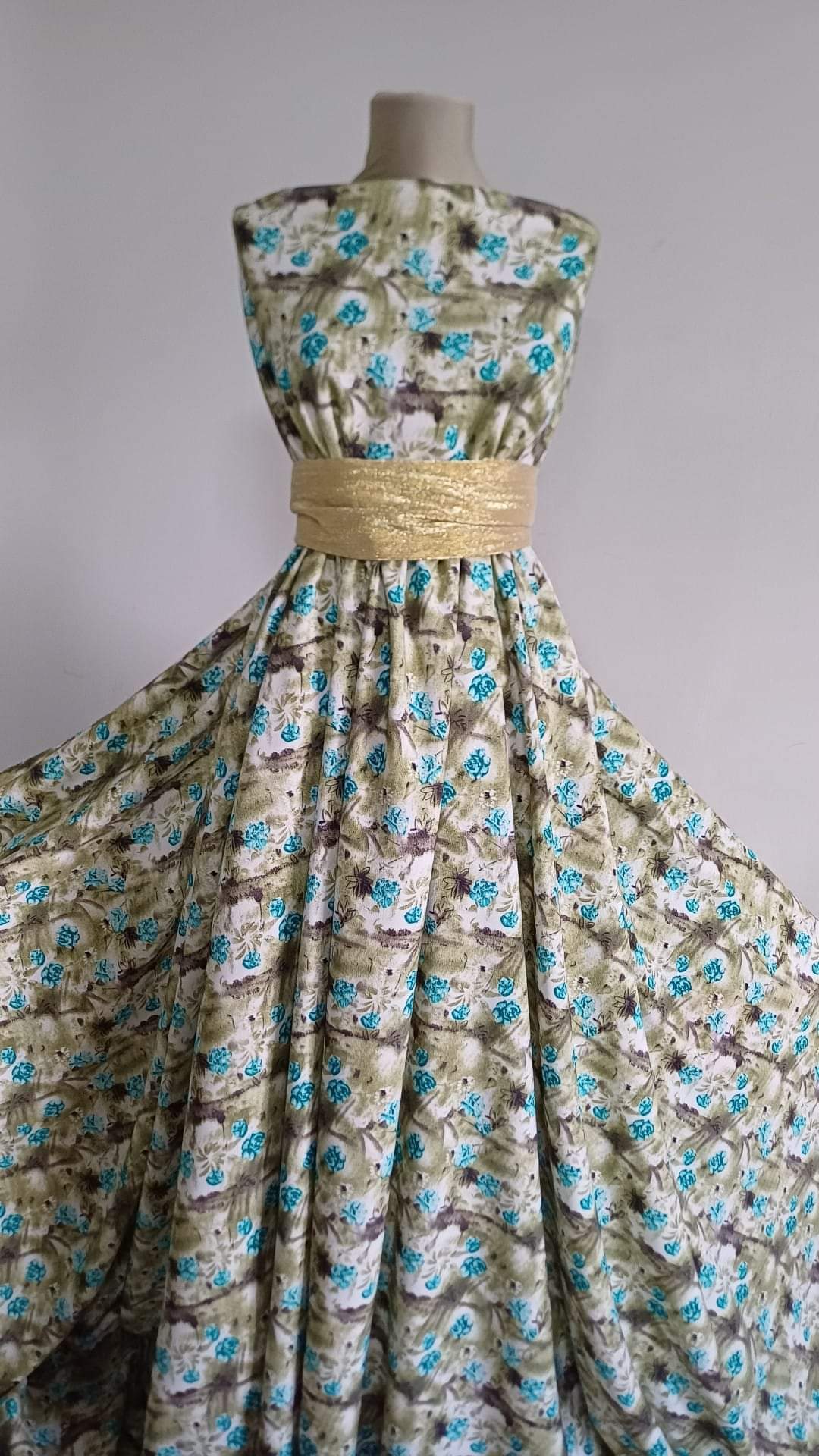 Stofa Imprimeu Floral Olive Turcoaz - elastică, ideala pentru rochii, fuste, bluze, pantaloni, salopete, sacouri
