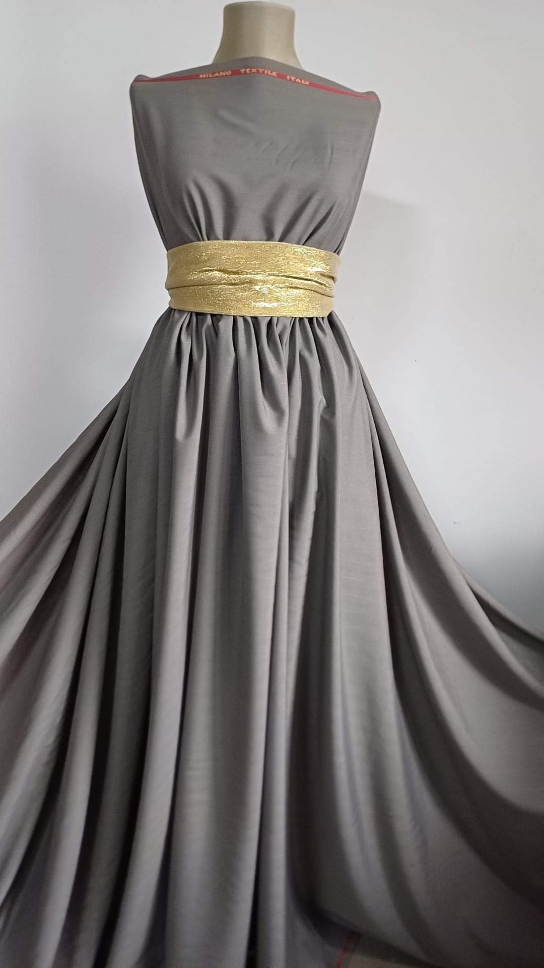 Stofa Milano Textil- Gri cu fir turcoaz, proveniența Italia, de grosimea unui tergal, ideala pentru rochii, fuste, pantaloni, sacouri, salopete