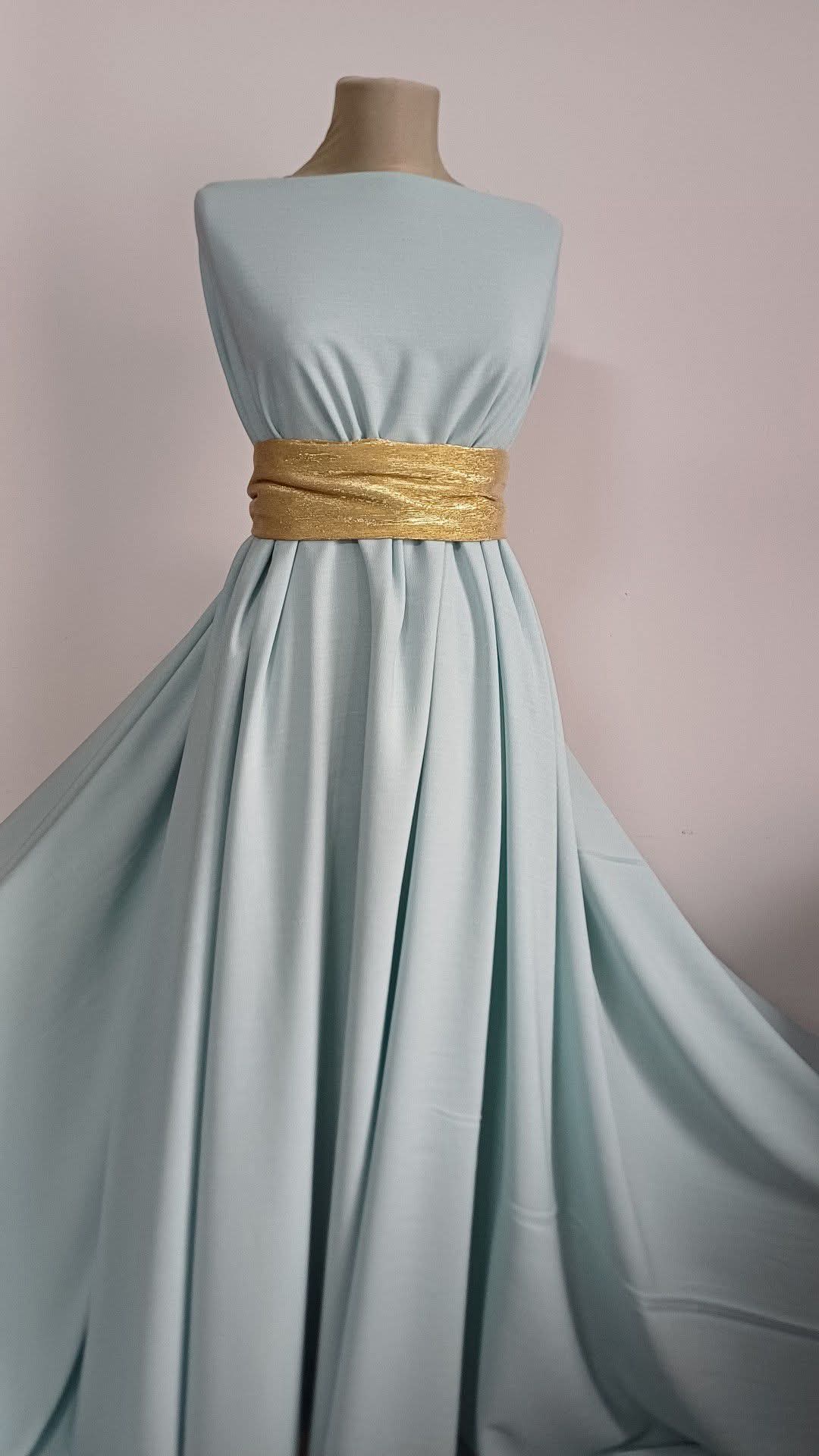 Stofă Mint, cu firișoare ușor vizibile, plină, nu necesită căptuseala, nu se șifonează, ideală pentru rochii, fuste, pantaloni, sacouri, salopete