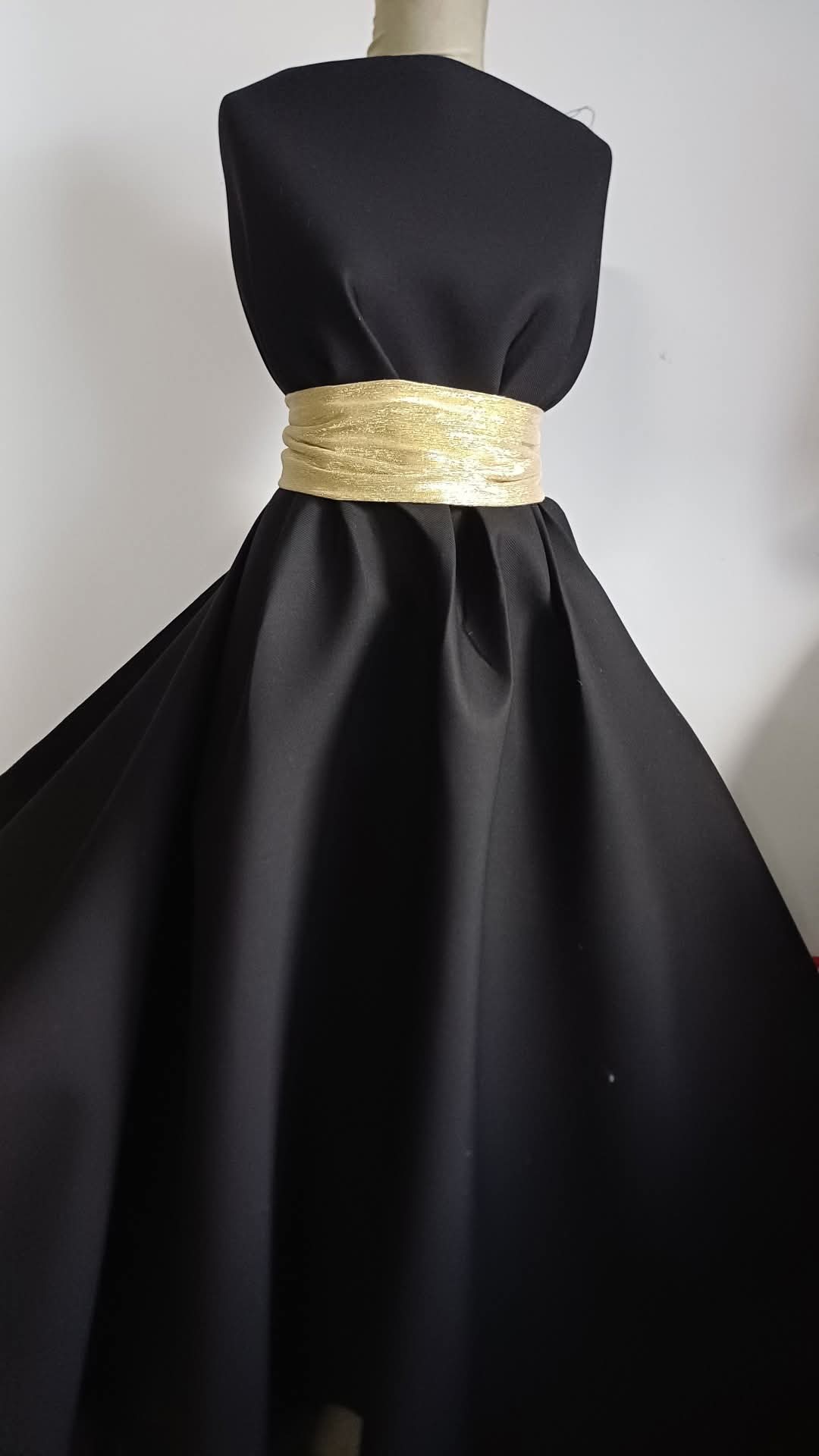 O țesătură elegantă și practică, cu un dos buretat ce oferă un plus de căldură și confort. Materialul are o textură plăcută și o ținută frumoasă, fiind ideal pentru confecționarea de scurte, paltoane, sacouri, geci tip bomber sau veste. Culoarea neagră adaugă rafinament și versatilitate, potrivindu-se perfect atât pentru ținute casual, cât și pentru piese cu un aer sofisticat.