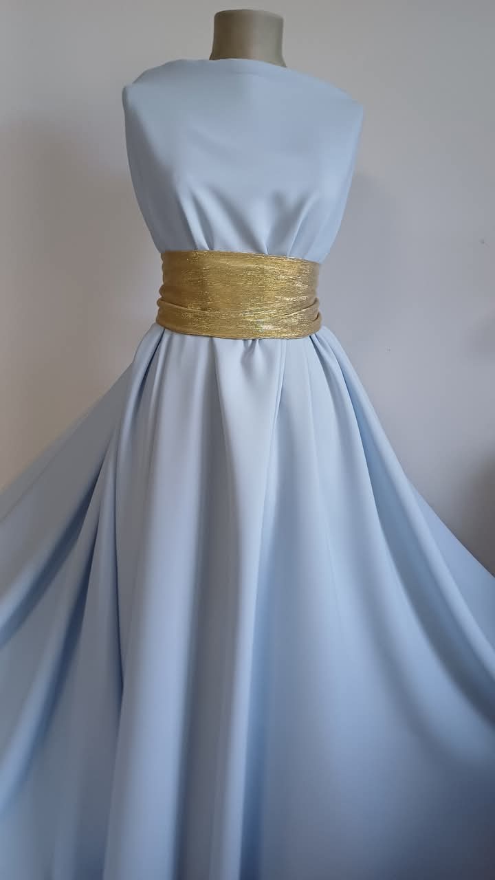 Cu un aspect rafinat și o fluiditate naturală, această stofă de proveniență coreeană impresionează prin simplitate și distincție. Nuanța bleo delicată se potrivește perfect pentru creații vestimentare feminine și moderne. Este un material plin de lejeritate, care nu necesită căptușeală și nu se șifonează, oferind o ținută impecabilă pe tot parcursul zilei. Ideală pentru rochii, fuste, bluze, pantaloni, salopete sau cardigane, este alegerea perfectă pentru siluete fluide și croieli elegante.