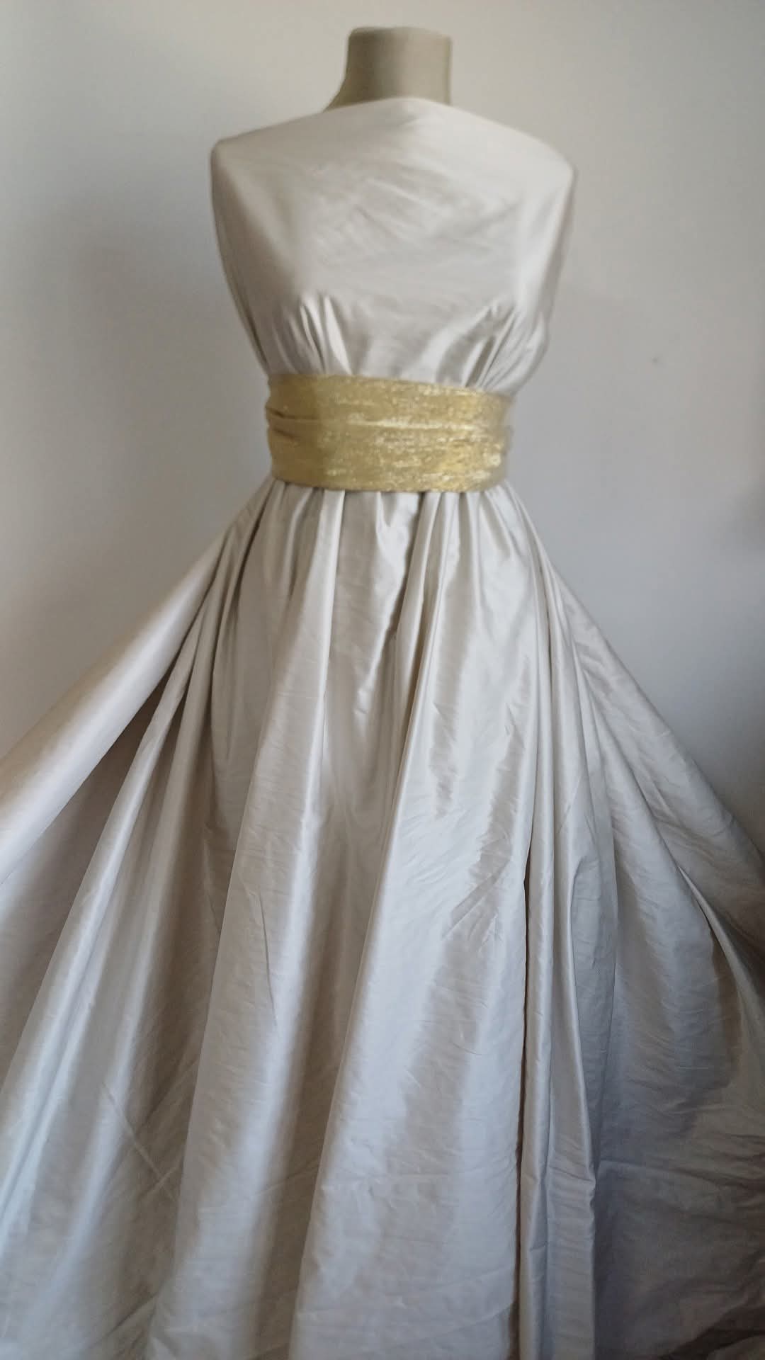 Cu un aspect ușor perlat și o textură fermă, această tafta bej sidef este alegerea ideală pentru ținute cu volum și structură. Datorită compoziției din fibre vegetale, materialul oferă un echilibru perfect între eleganță, naturalețe și confort.