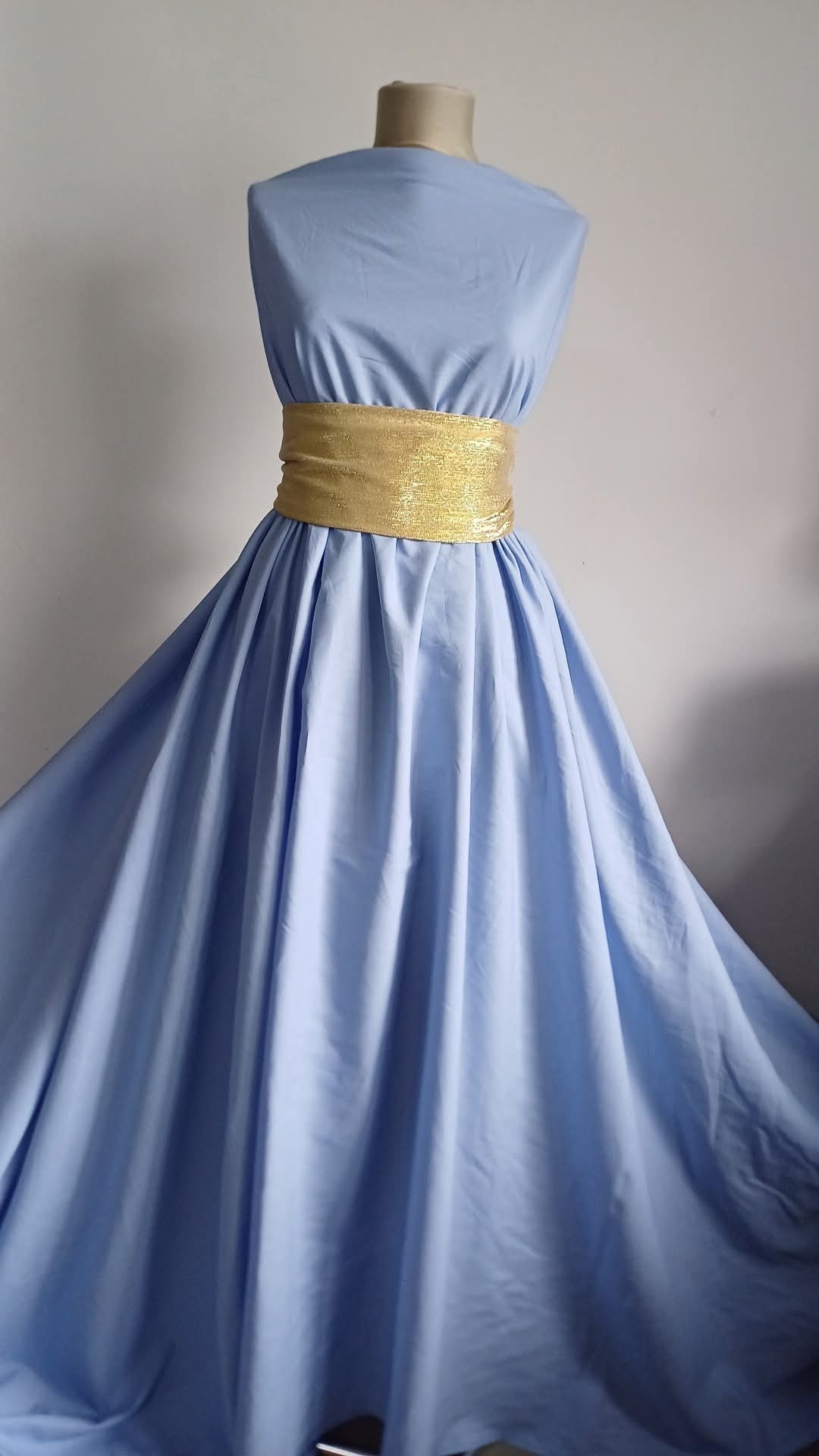 Țesătură din bumbac 100% în nuanța delicată baby blue, realizată din fibră naturală, cu o ușoară ținută înfoiată ce oferă volum și lejeritate. Ideală pentru rochii vaporoase, fuste jucăușe, bluze confortabile, pantaloni ușori, șorțulețe, sarafane, costume medicale sau articole brodate. Un material versatil, practic și plăcut la purtare, perfect pentru creații cu aer proaspăt și natural.