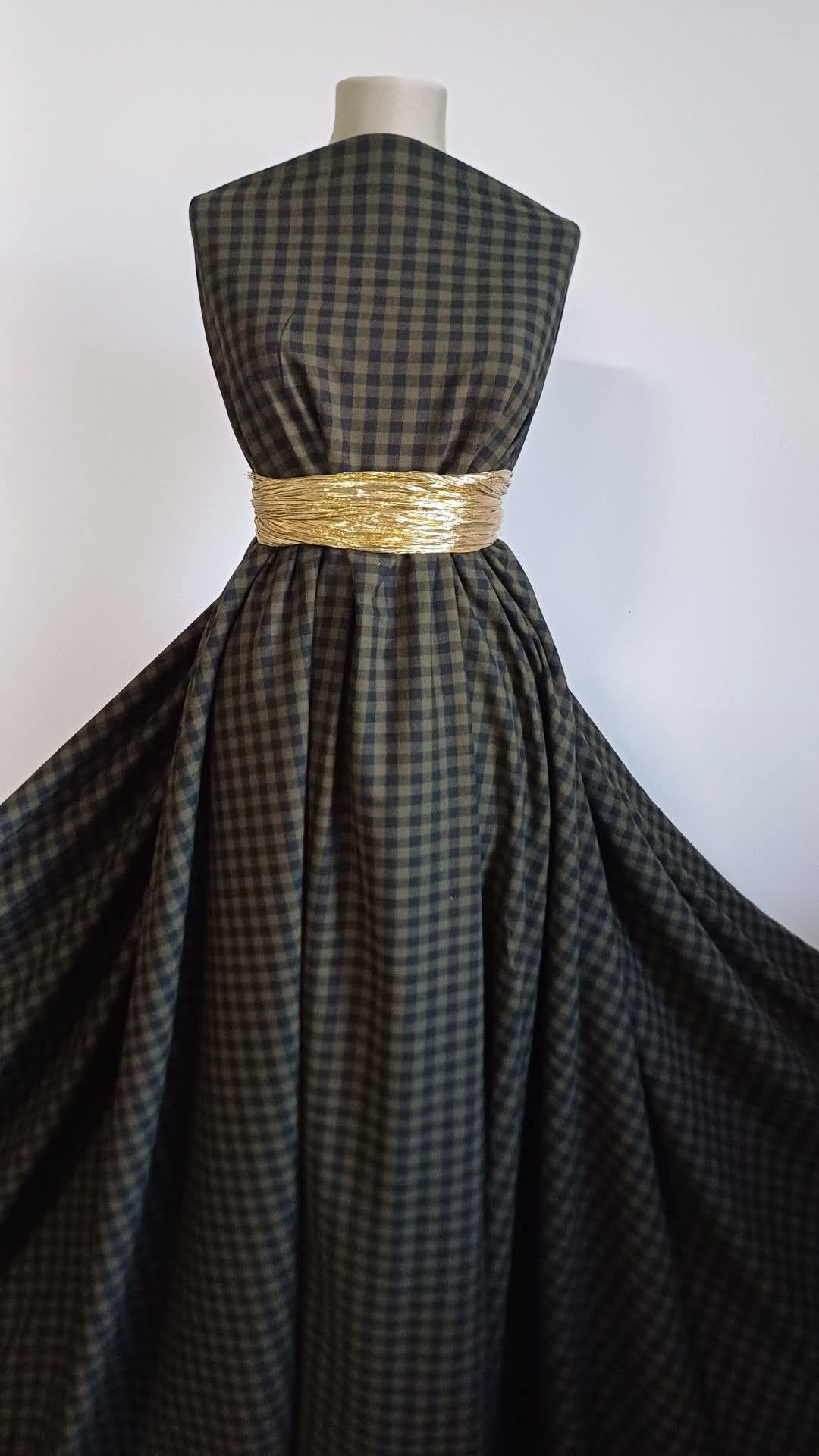 Tesatura Bumbac usor pufos, tip Finet. patratele negru/kaki , fibra naturala 100%, ideala pentru rochii, camasi, fuste, pantaloni, pijamale pentru sezonul rece, articole pentru copii si adulti