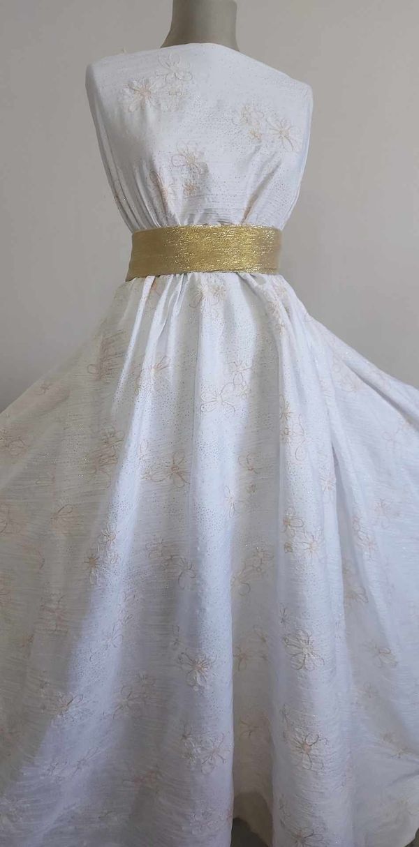 Tesatura Mătăsoasă Crinckle Alb cu Broderie Nude și picouri sclipici este o alegere remarcabilă pentru articolele vestimentare elegante și rafinate. Textura crinckle conferă materialului un aspect plin de viață și unicitate, aducând un element de dimensiune și textură la hainele tale. Broderia nude adaugă un aspect subtil și sofisticat, care se evidențiază frumos pe fondul alb mată. Picourile sclipici aduc o notă de strălucire discretă și subtilă, care completează aspectul general al țesăturii. Această combinație îți permite să creezi rochii, fuste, bluze și cămăși care să atragă privirile și să aducă un aer elegant și plin de rafinament în garderoba ta.