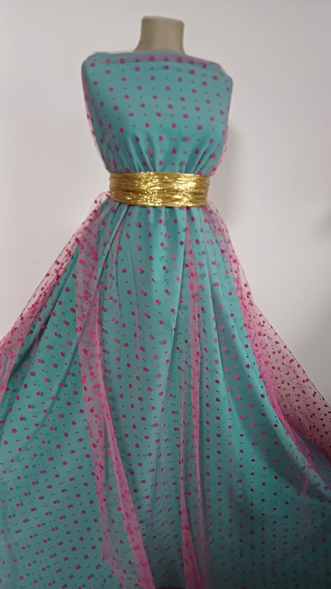 Vibrant și plin de personalitate, acest tull elastic în nuanță fucsia este decorat cu steluțe fine din catifea, adăugând un plus de dinamism și originalitate. Perfect pentru rochii statement, fuste jucăușe, bluze cu accente speciale sau decorațiuni care ies din tipare. Un material care inspiră creativitate și energie.