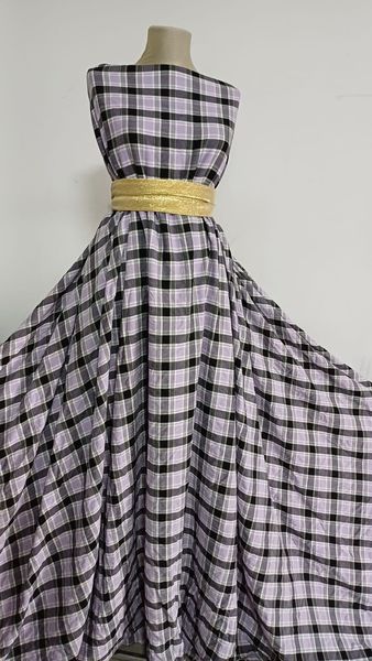 Viscoza în carouri în nuanțe de lila, negru și alb, realizată din 100% fibră naturală, este o alegere remarcabilă pentru diverse piese vestimentare. Cu o textură plină și confortabilă, această țesătură este potrivită pentru rochii, fuste, bluze, pantaloni și salopete.