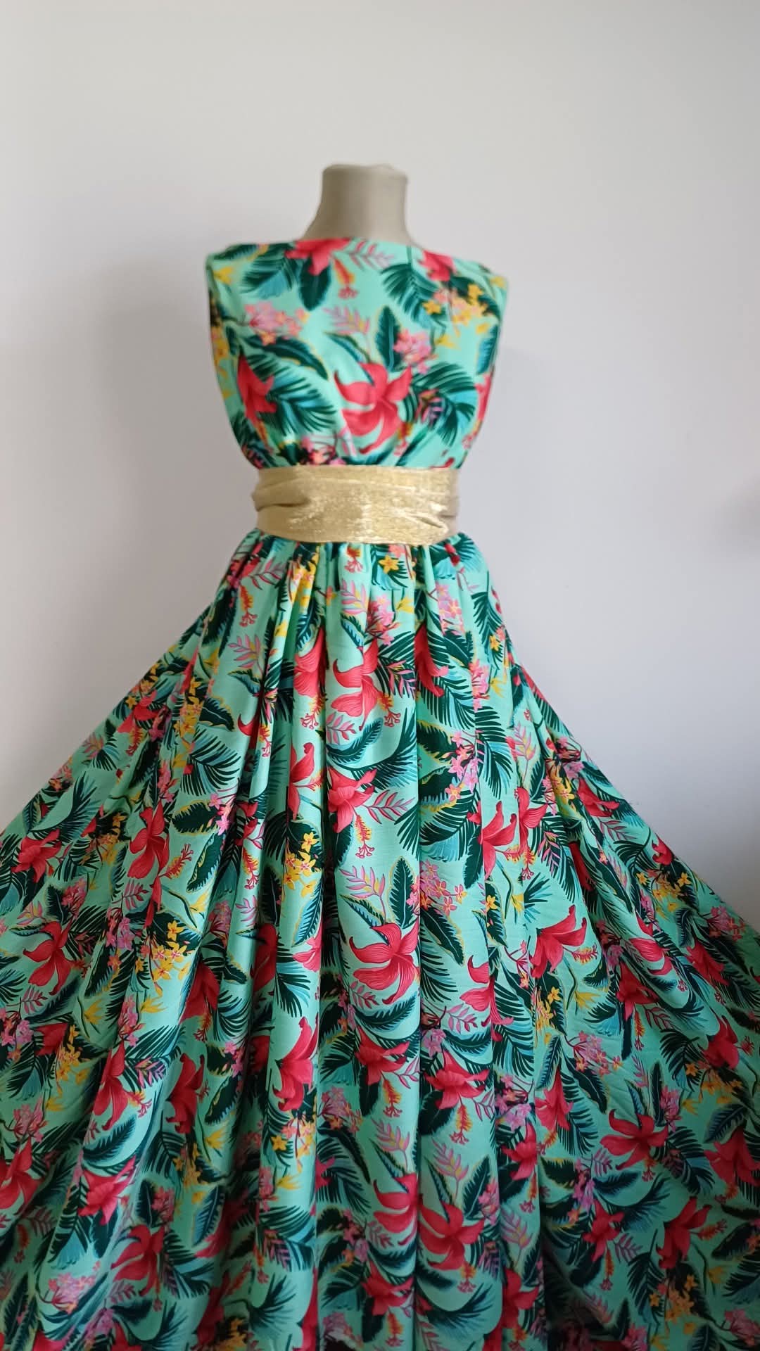 Un material spectaculos, plin de prospețime și eleganță! Această viscoză Spun din fibră vegetală 100%, cu fundal verde deschis și imprimeu luxuriant de crini imperiali roșii, este moale, catifelată și extrem de plăcută pe piele. Ideală pentru rochii vaporoase, fuste elegante, bluze lejere, pantaloni comozi sau salopete rafinate.